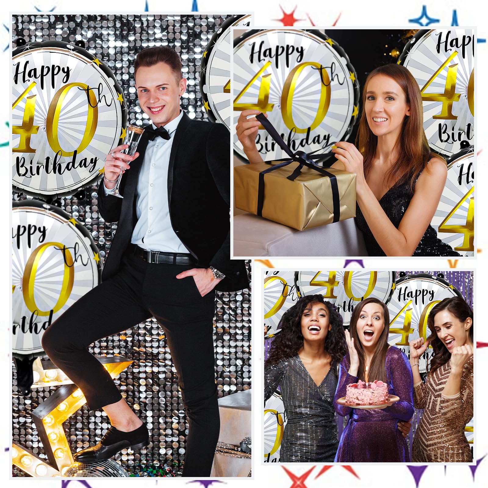 40. sünnipäeva fooliumõhupallide komplekt, must ja kuldne