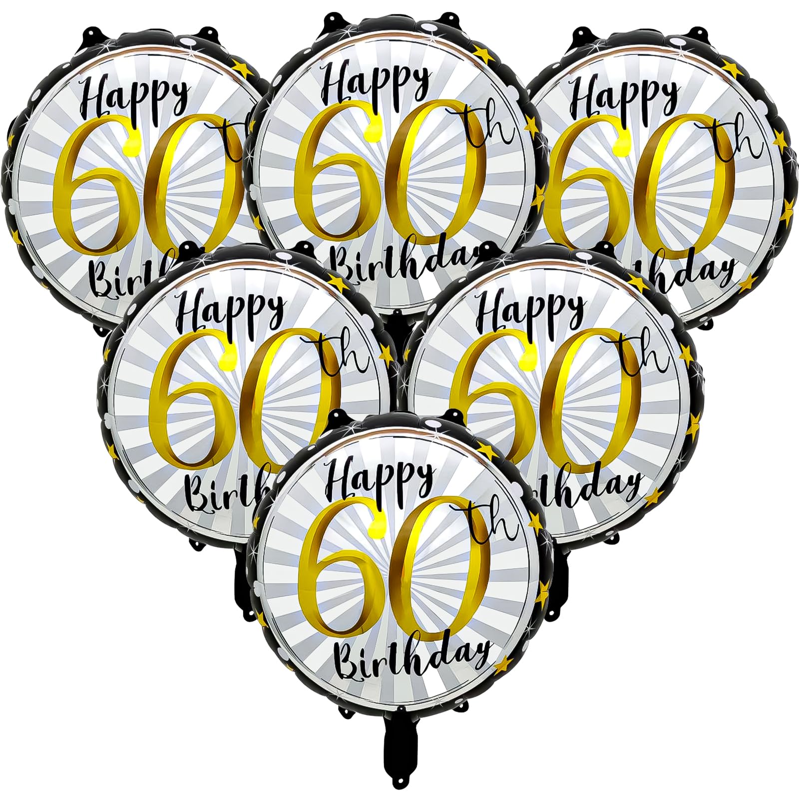 60. sünnipäeva fooliumõhupallid, must ja kuldne (6tk)