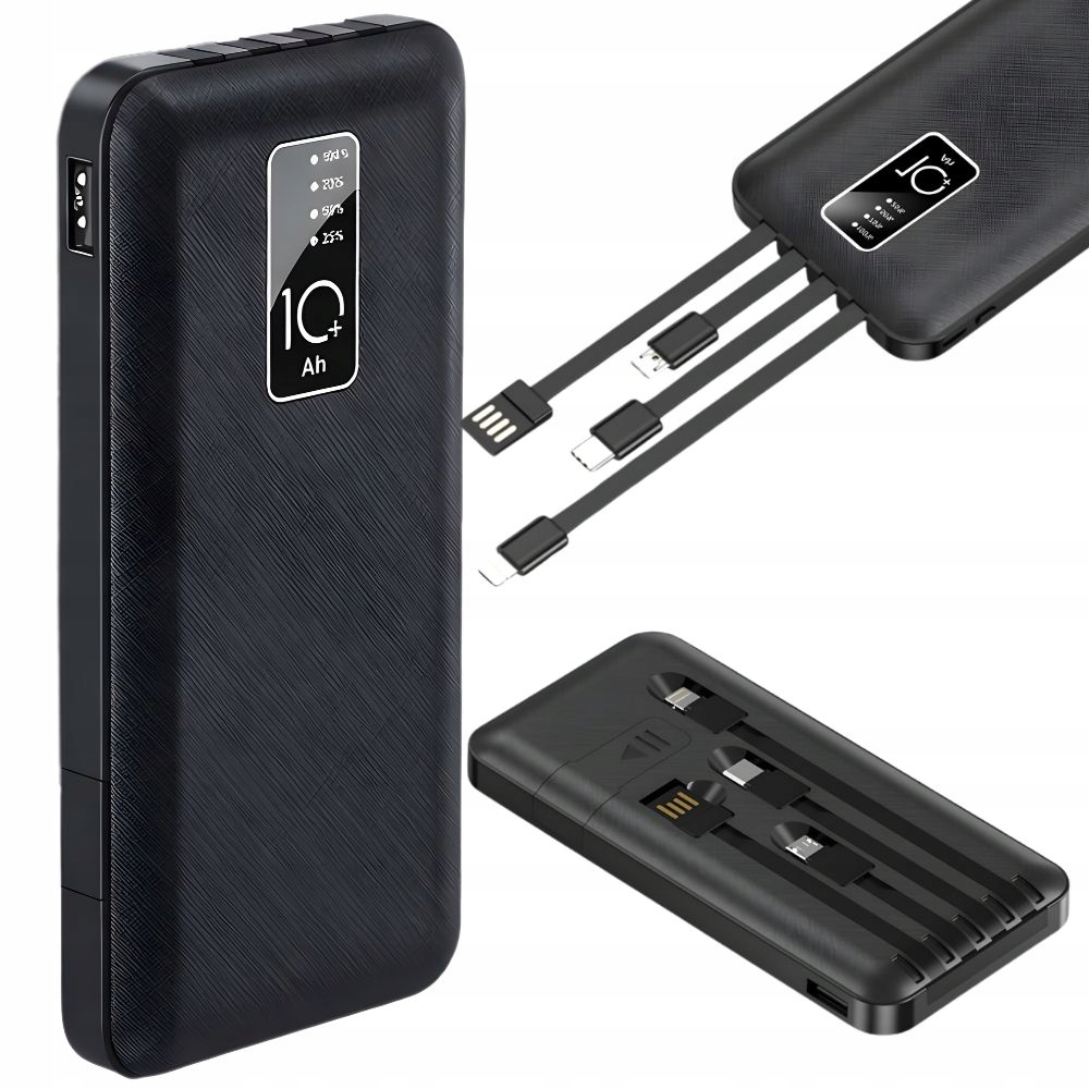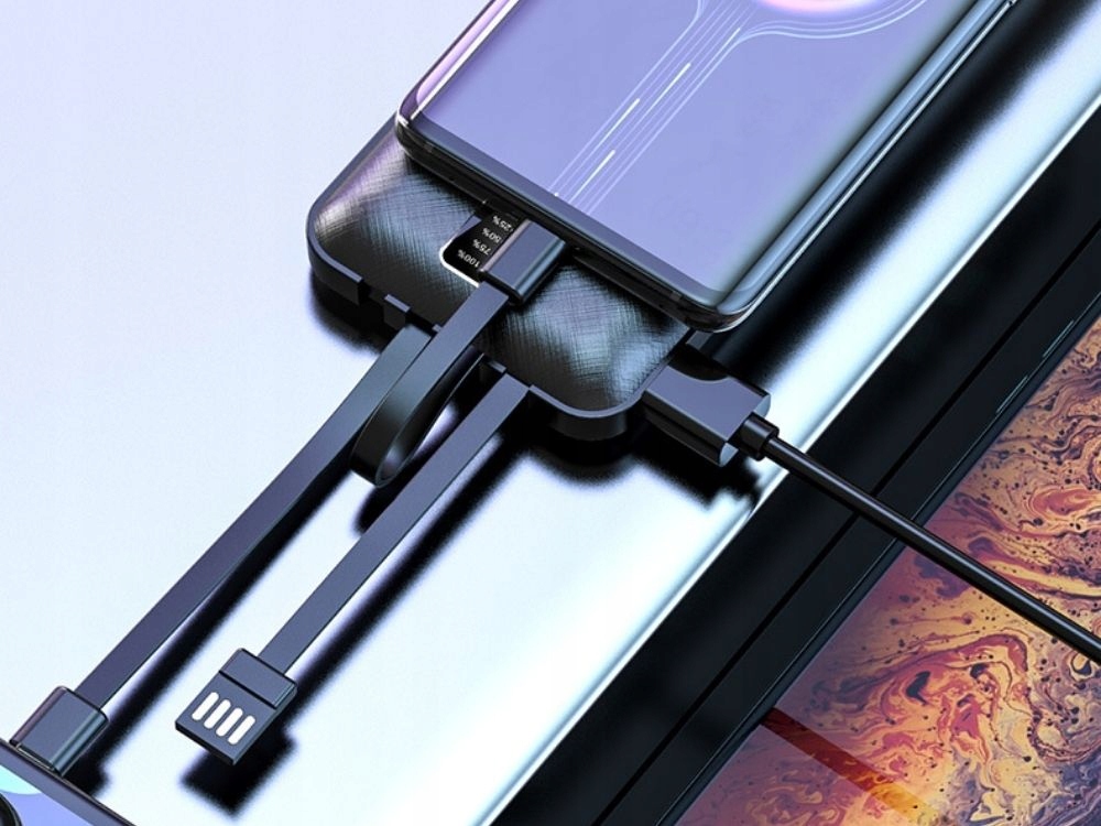 Akupank sisseehitatud kaablitega USB, Micro USB, USB C, lightning (iPhone) 10 000 mAh