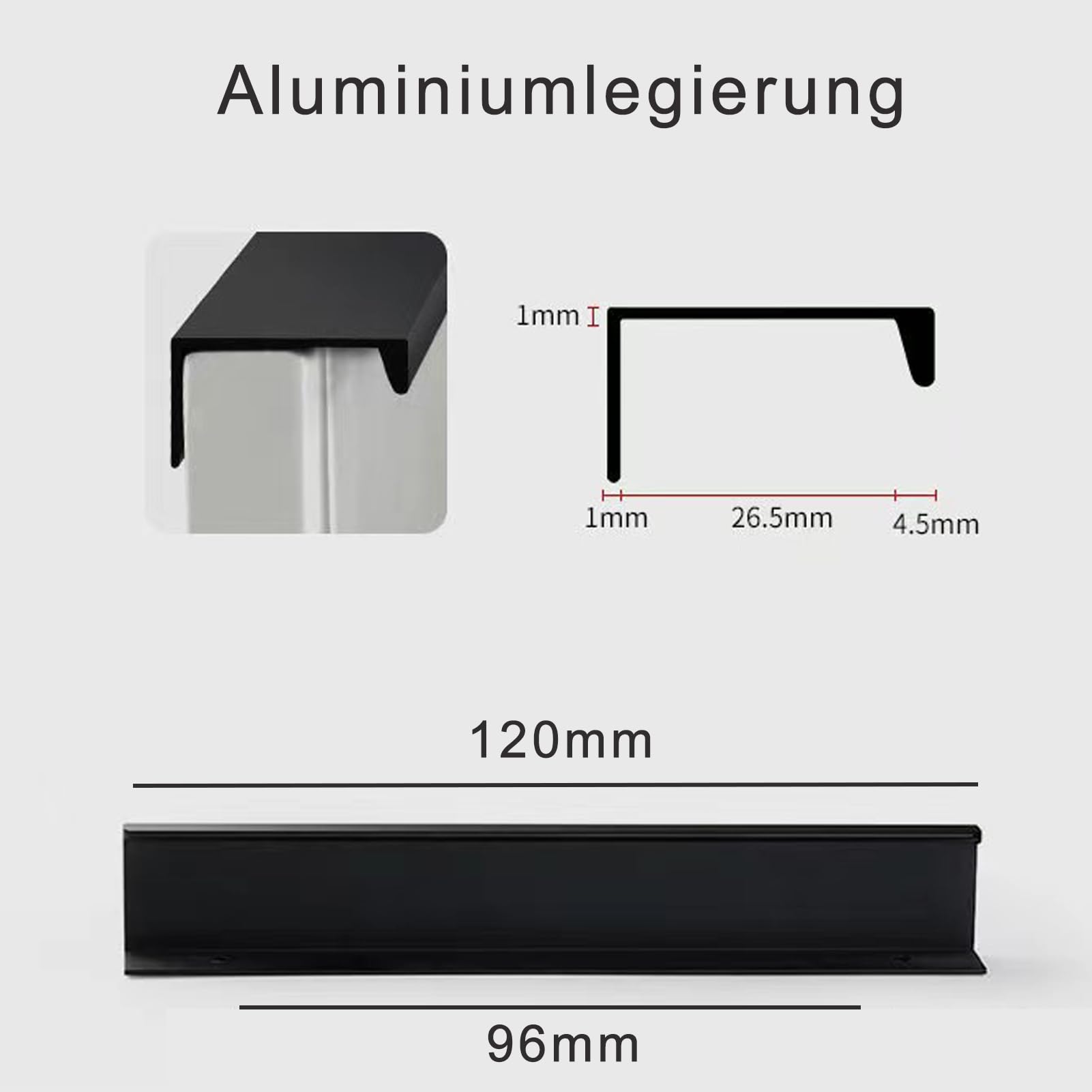 Alumiiniumist peidetud ukselingid, mustad (4tk, 12cm) kogus