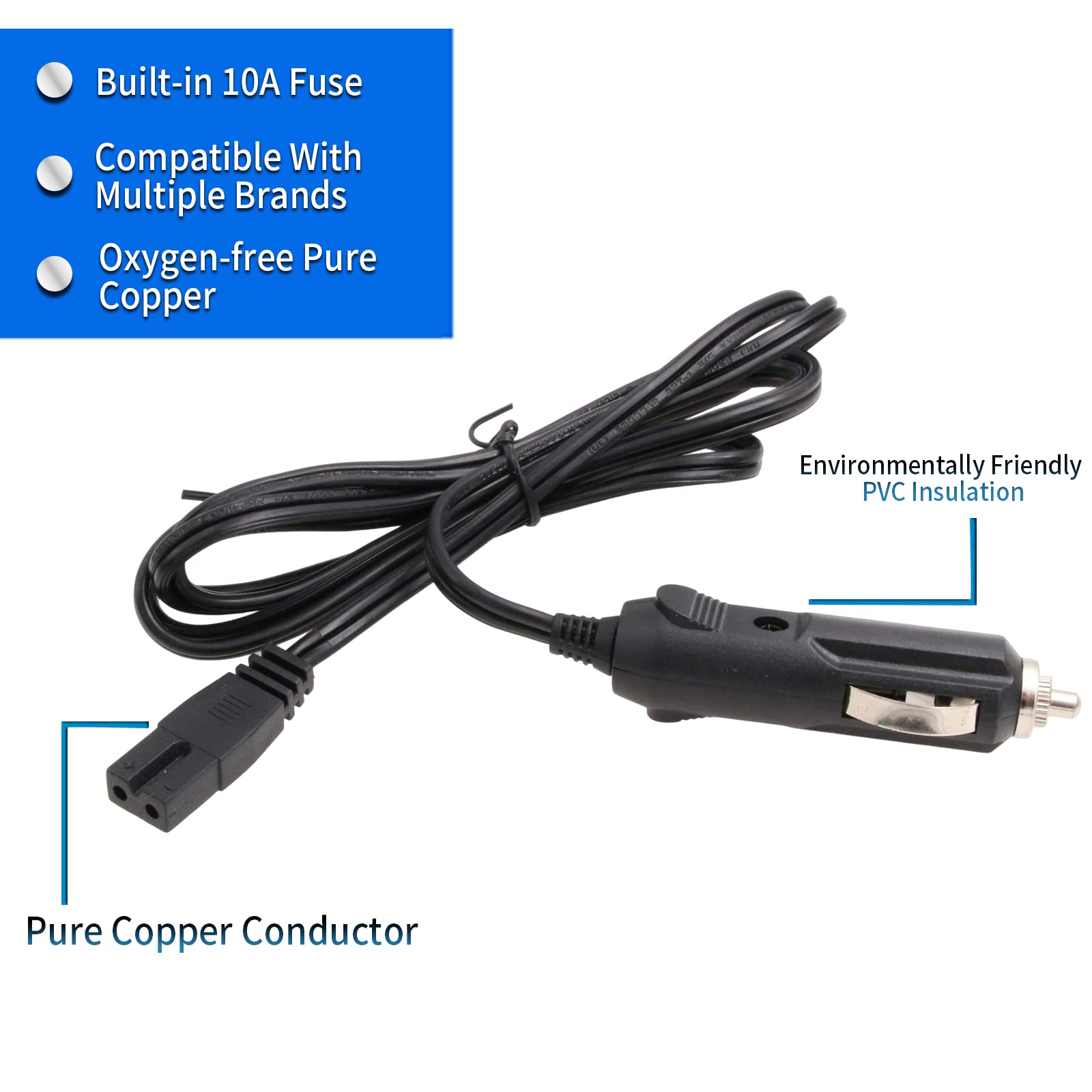 Autokülmiku toitekaabel, must (12V, 2-pin)