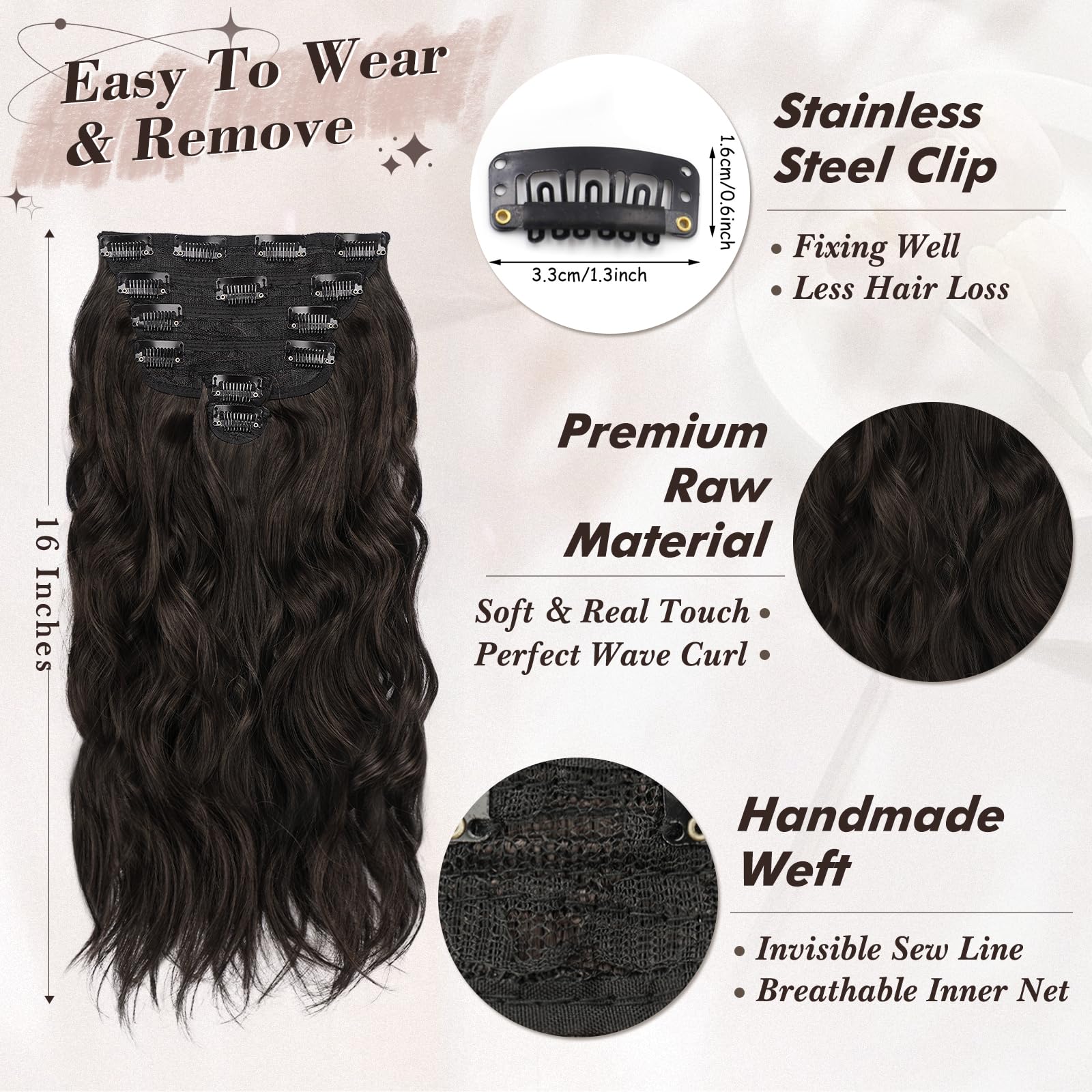 Clip-in juuksepikendused, lained, tumepruun (40cm) kogus