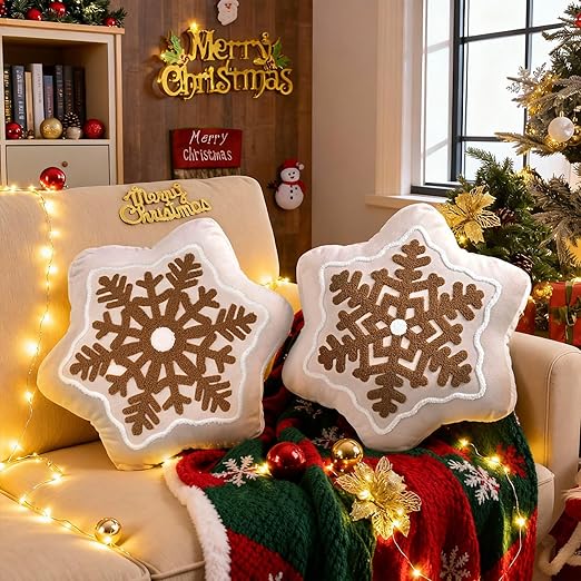 Dekoratiivsed lumehelvestega padjad, kohevad, beežid 2 tk (44x44cm)