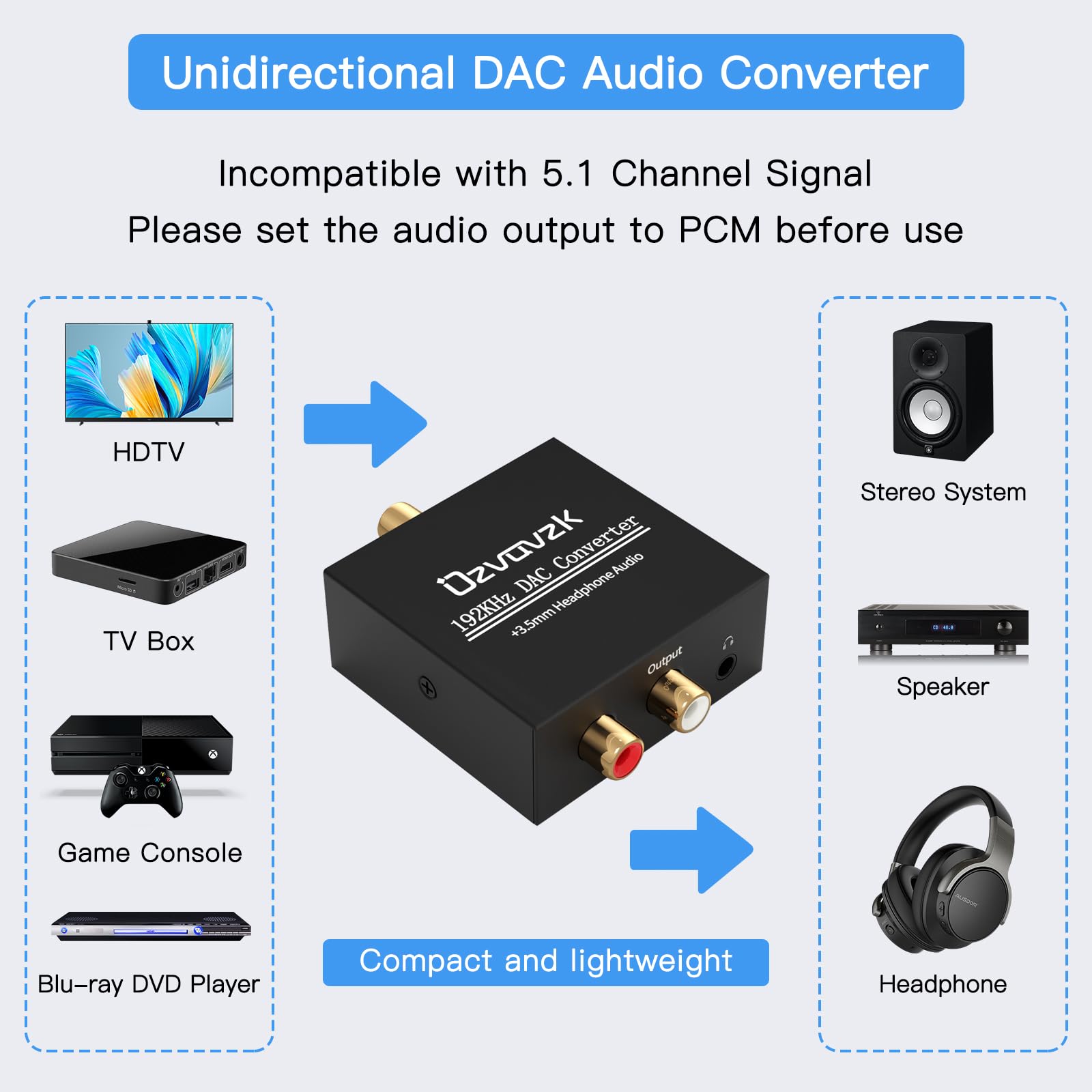 Digitaal-analoog helikonverter koos optilise kaabliga kogus