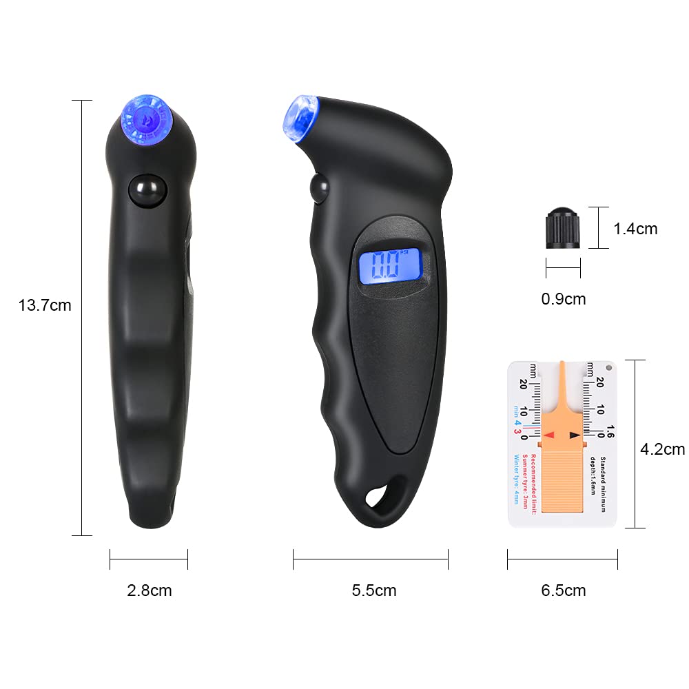 Digitaalne rehvirõhumõõtur, LCD ekraaniga, autole/jalgrattale