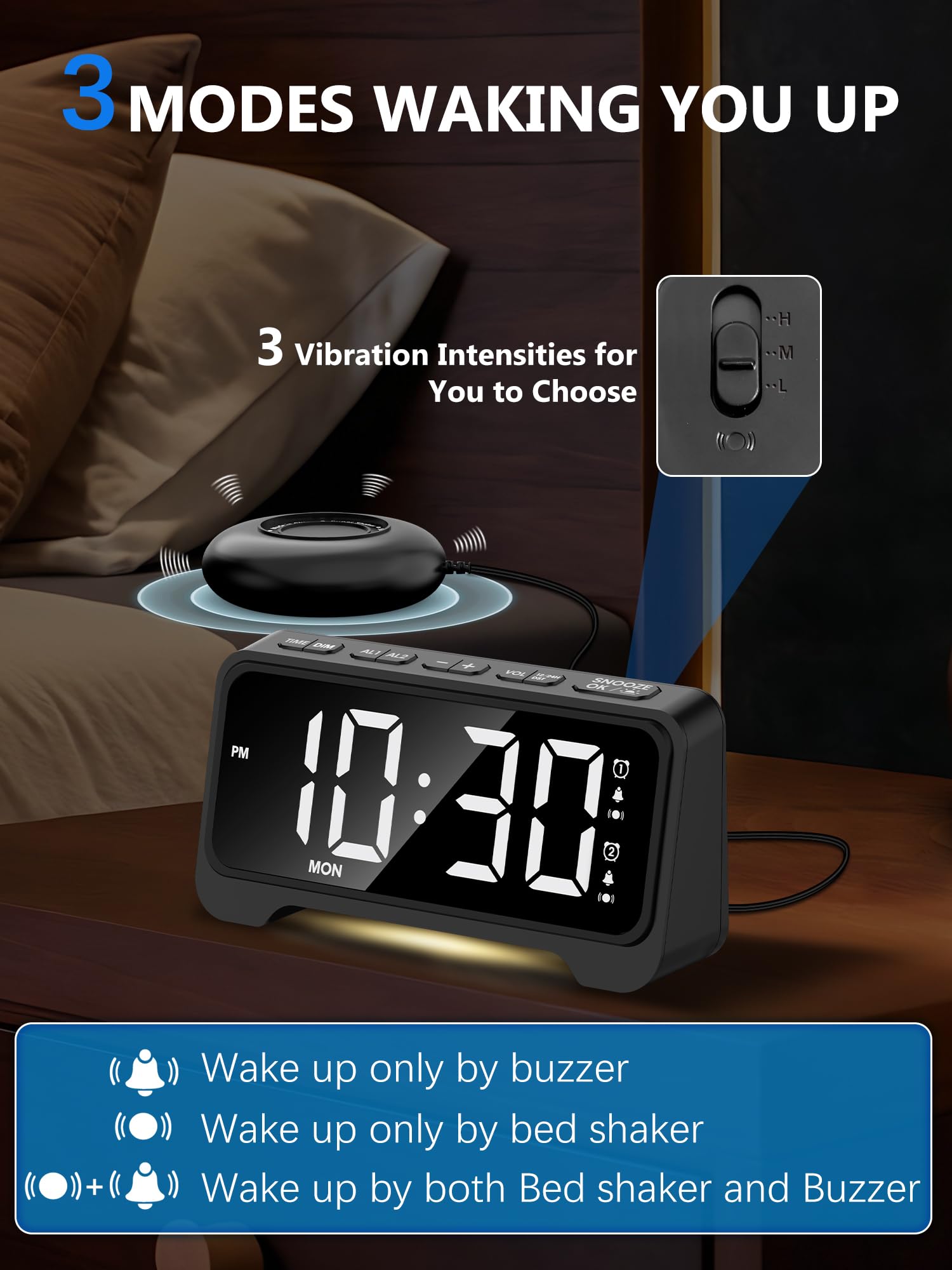 Digitaalne vibratsiooniga äratuskell öölambiga
