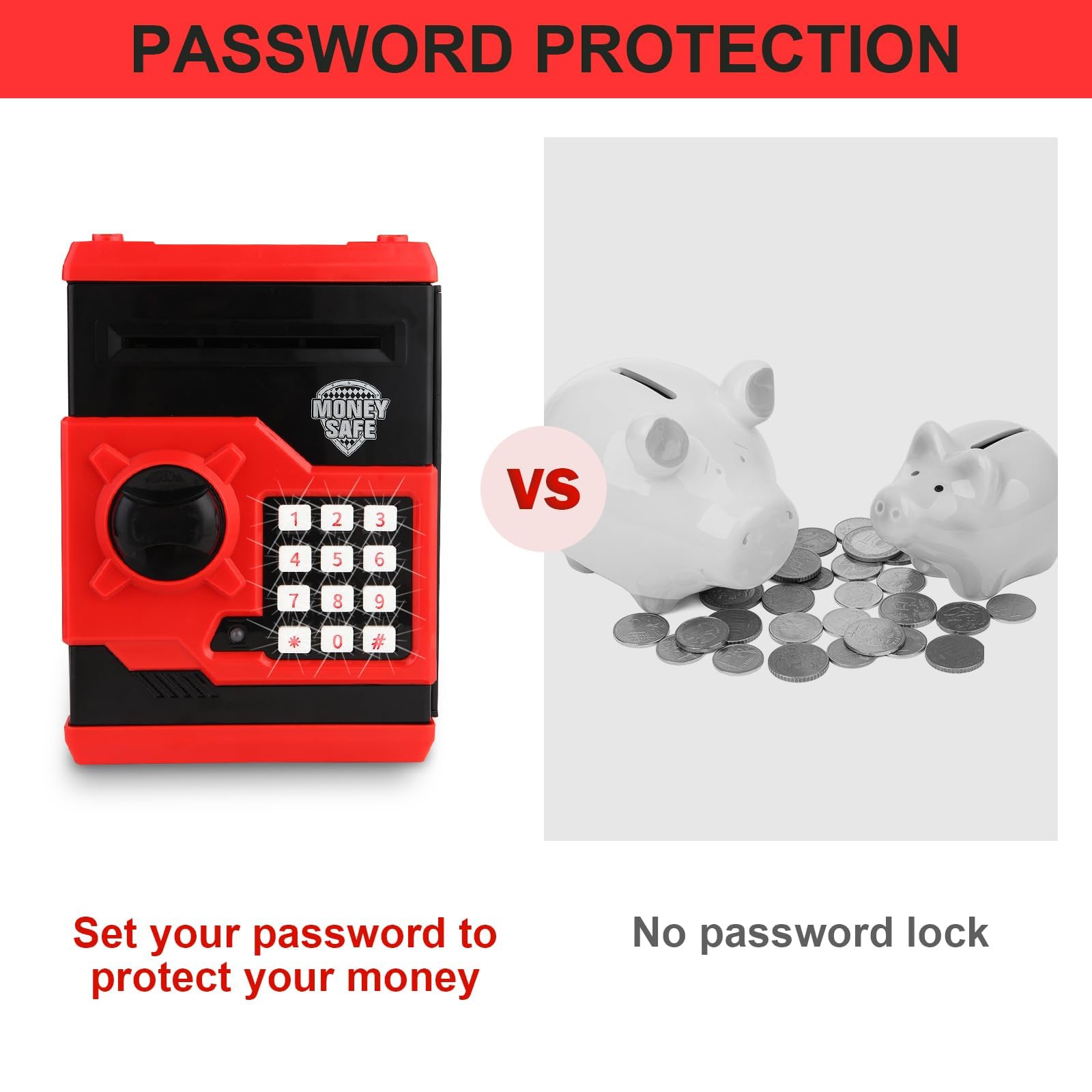 Elektrooniline laste rahakassa koodiga, punane (XXL)