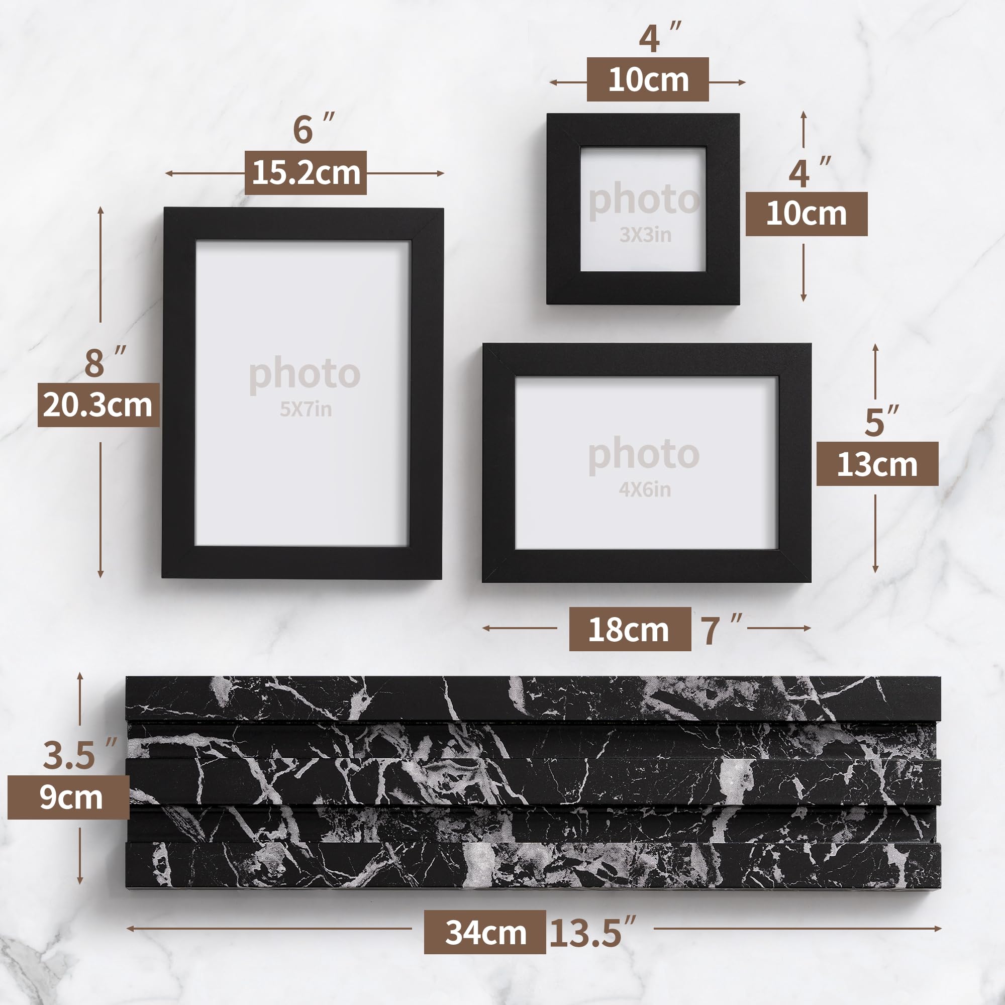 Fotoraamid, must marmormuster (3tk, 10×15, 13×18, 8x8cm)