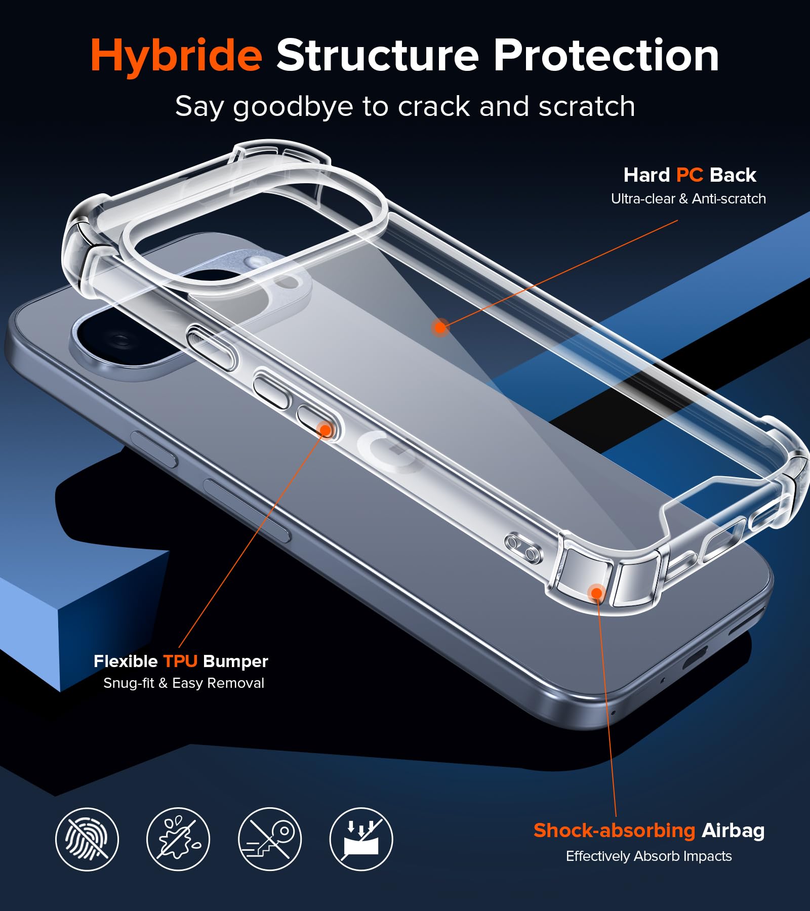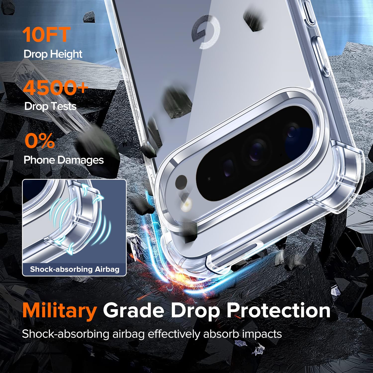 Google Pixel 10 Pro XL telefonikaaned, läbipaistev kogus
