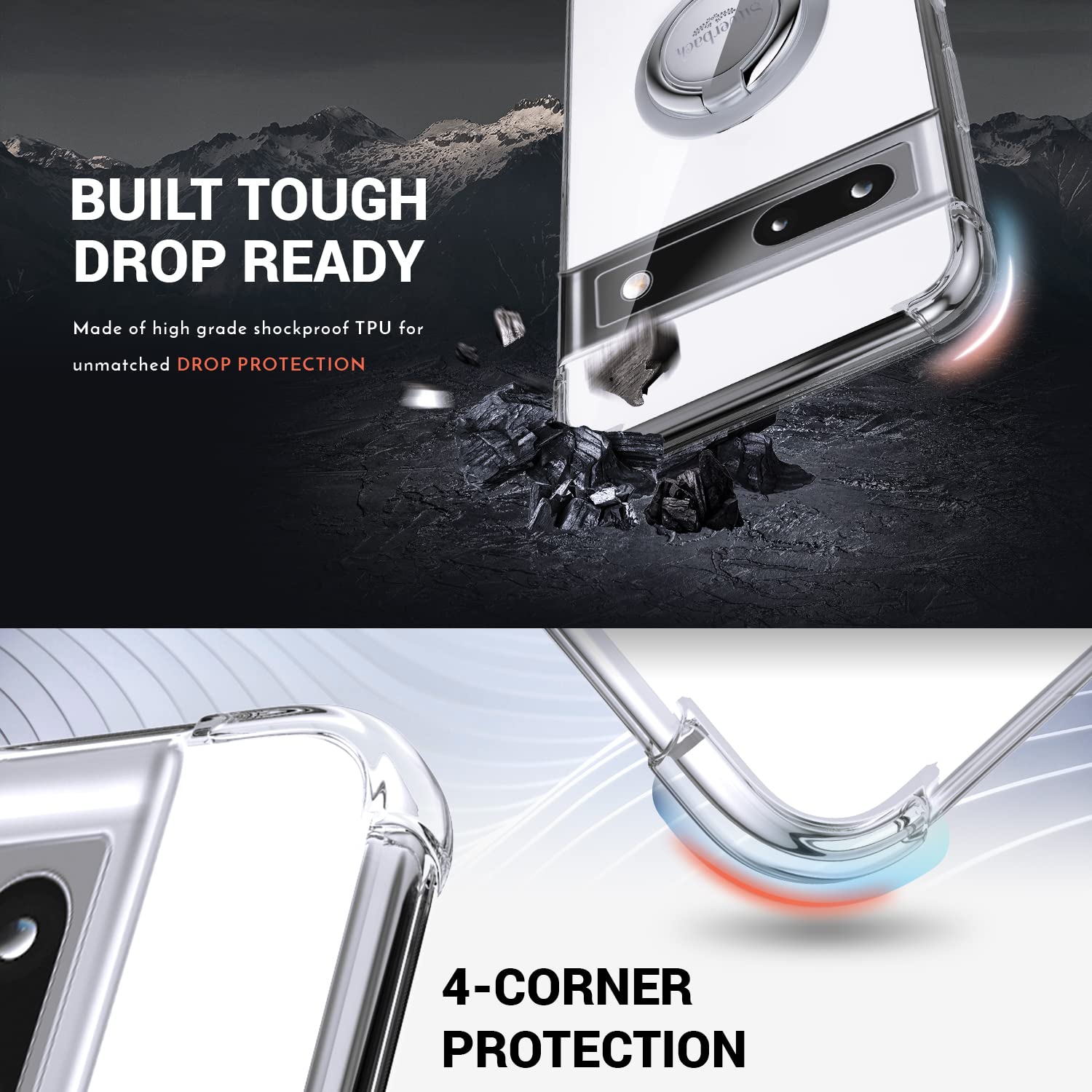 Google Pixel 6A telefonikaaned, pööratava rõngasjalaga, läbipaistev