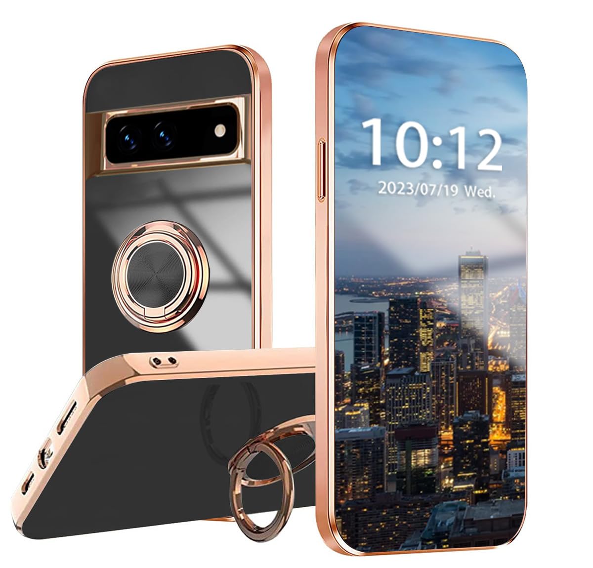 Google Pixel 7a silikoonkaaned, sõrmusehoidjaga, must