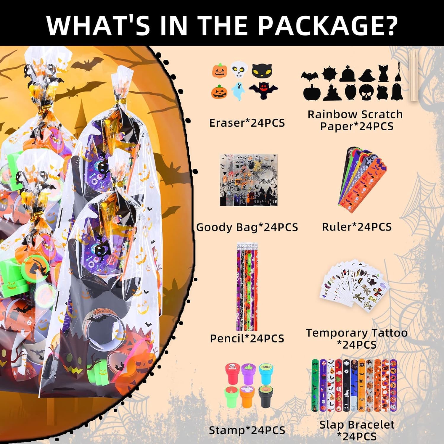 Halloweeni kingikomplekt (192 osa) – käevõrud, pliiatsid, joonlauad, templid, kraapimispildid jpm