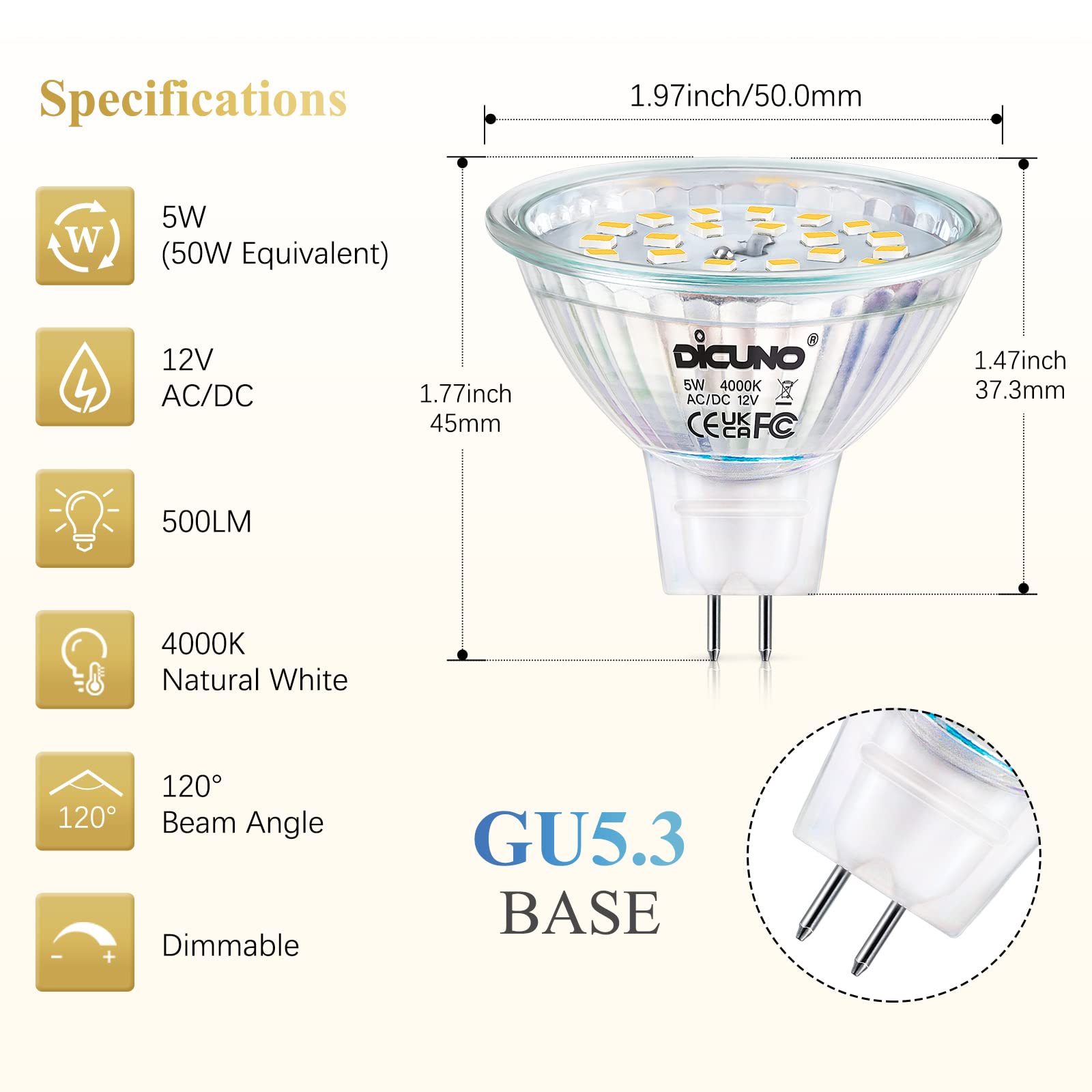Hämardatavad LED-lambid GU5.3, neutraalne valgus (10tk, 5W)