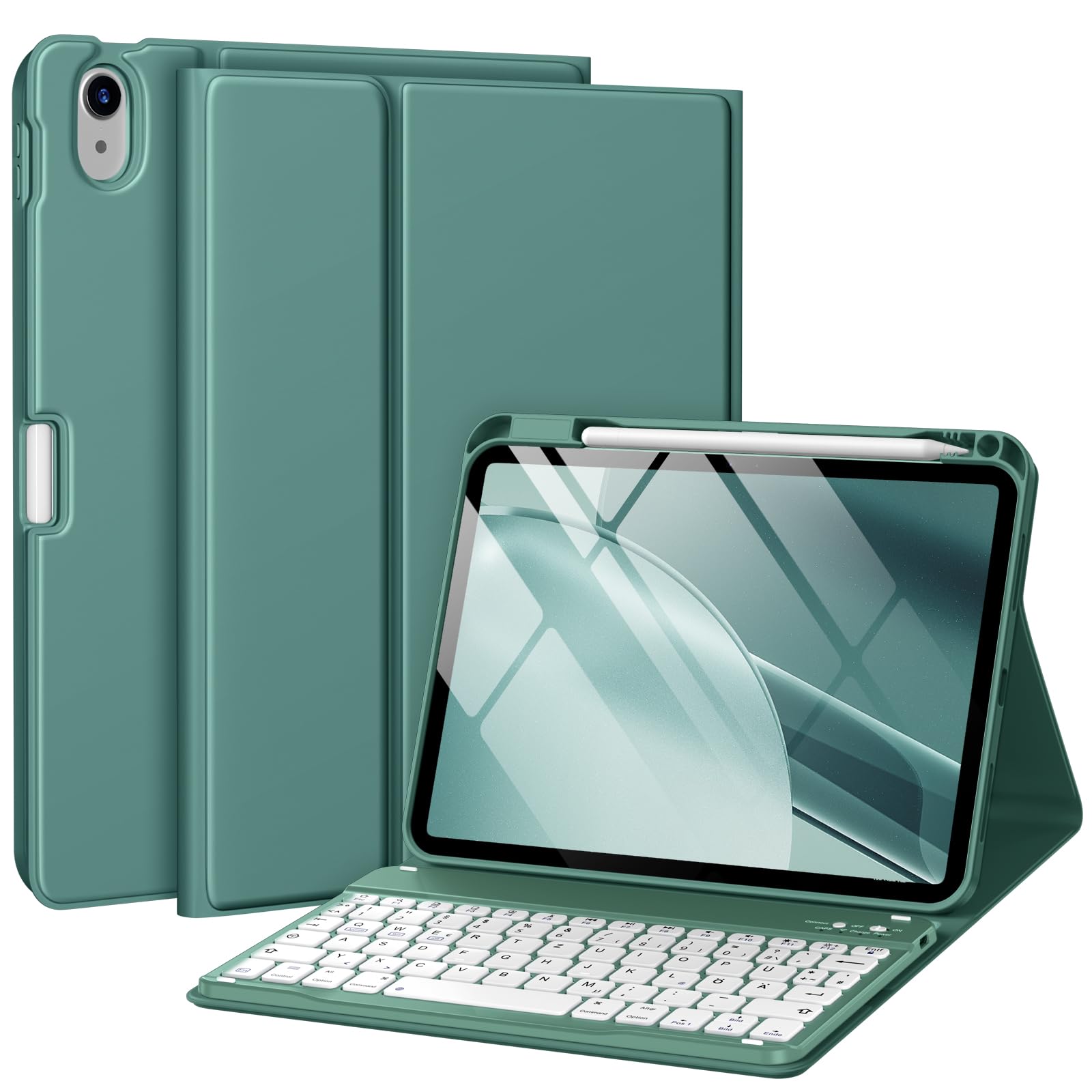 iPad A16 klaviatuuriga kaaned, eemaldatav, pliiatsihoidjaga, männiroheline