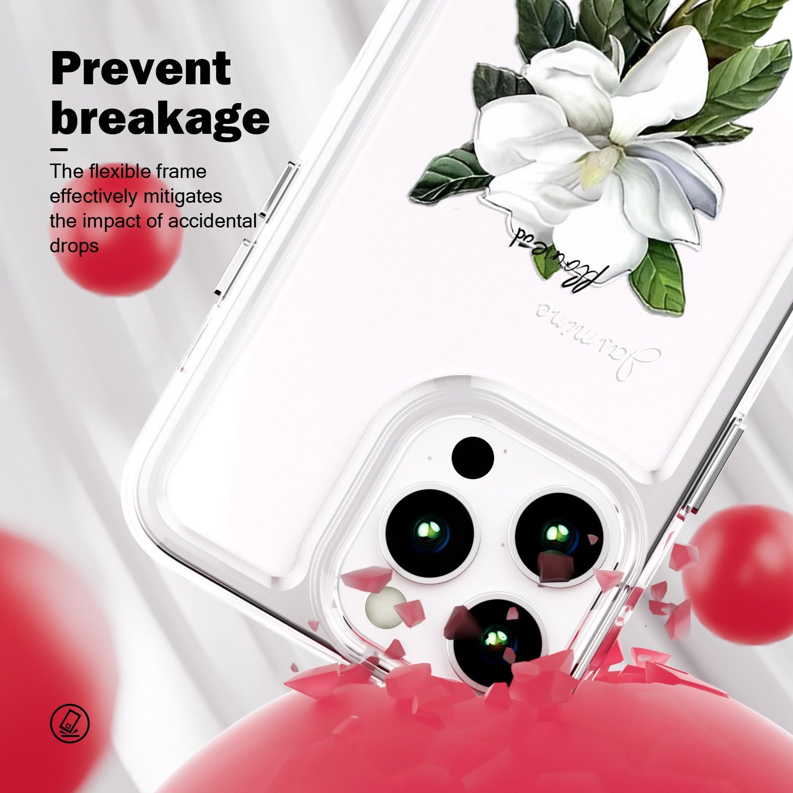 iPhone 12/12 Pro telefonikaaned, õhukesed, löögikindlad, kriimustuskindlad, läbipaistvad, lillemustriga