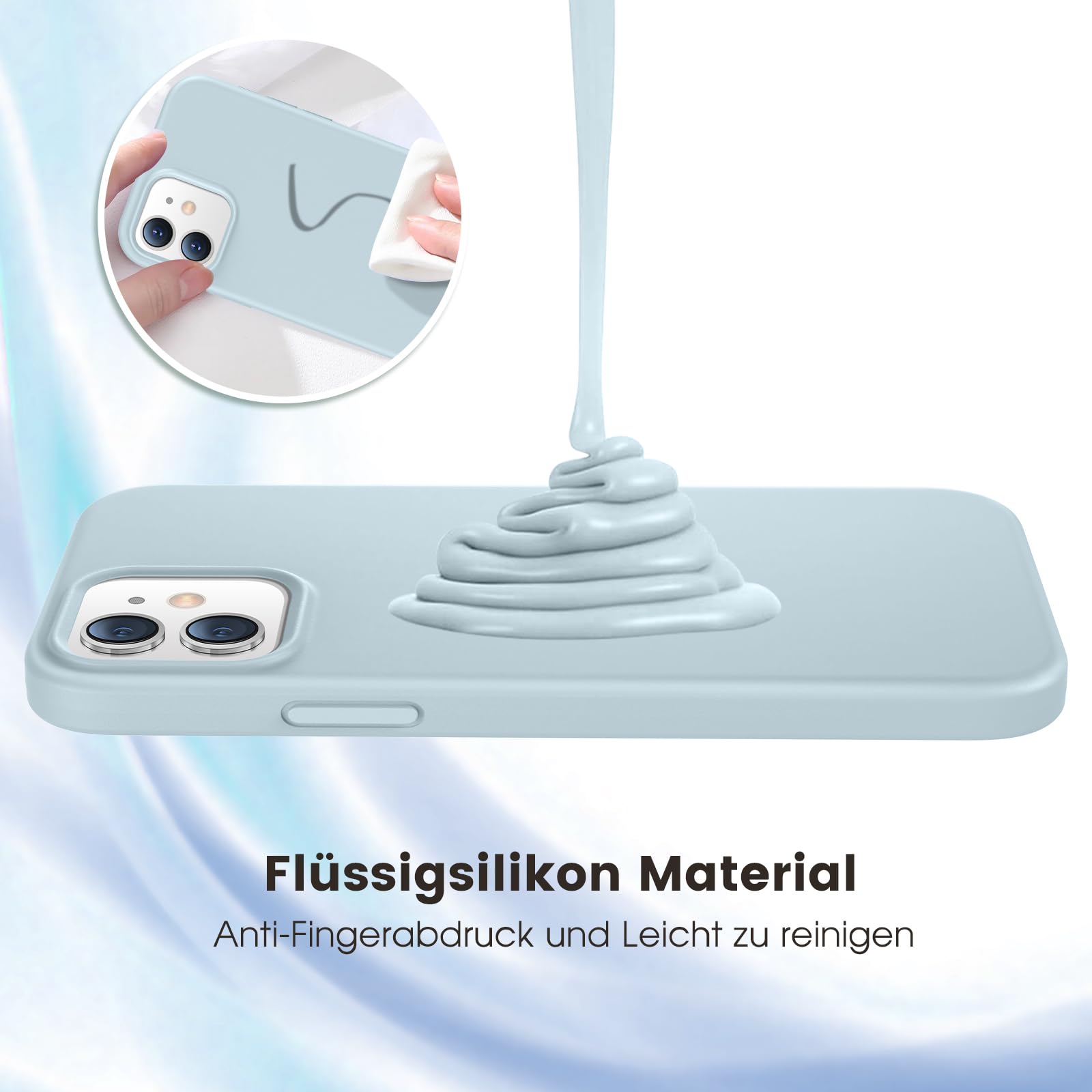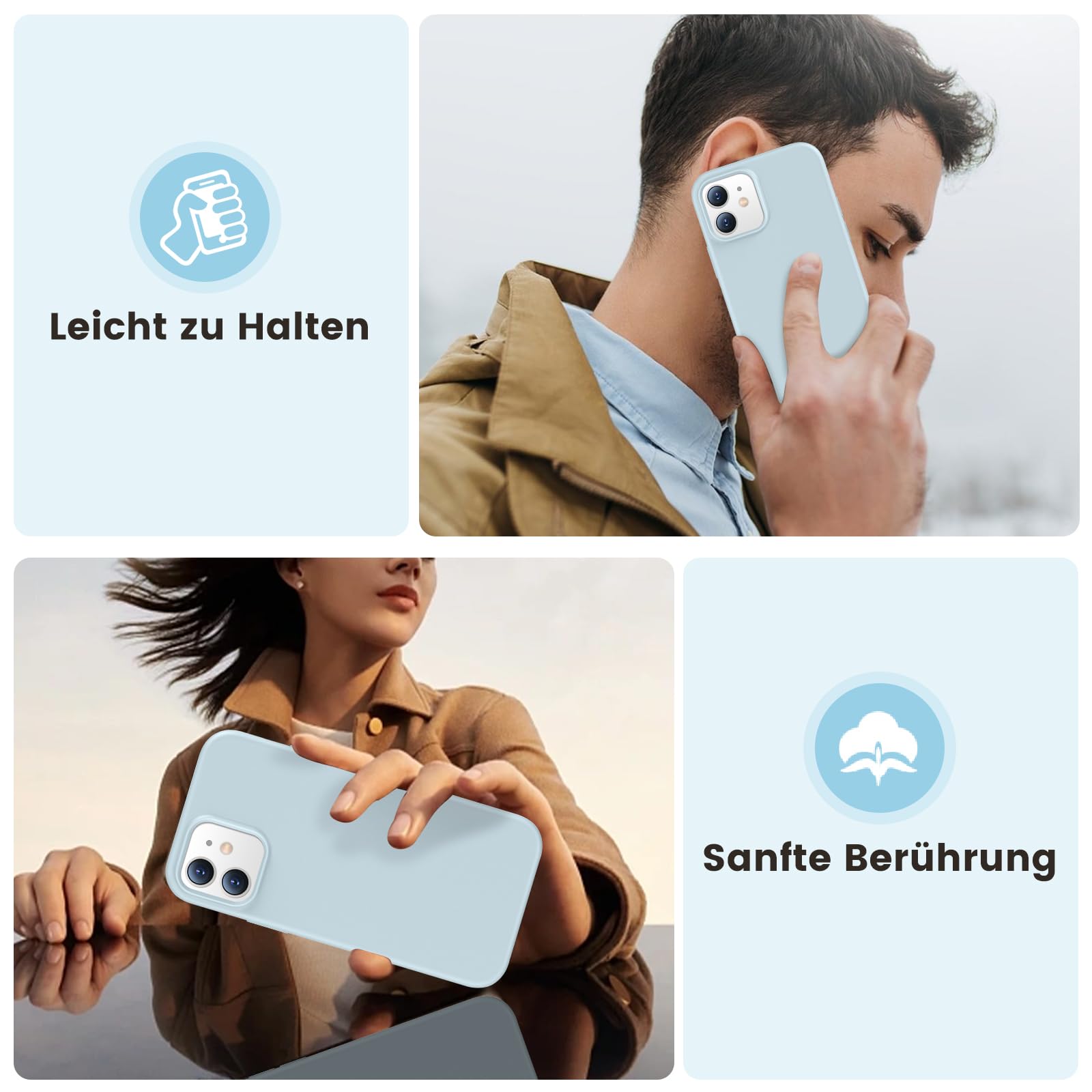 iPhone 12/12 Pro telefonikaaned, vedel silikoon, täieliku kaitsega, 4-kihiline, põrutus- ja kriimustuskindel, pehme mikrofiibervoodriga, taevasinine