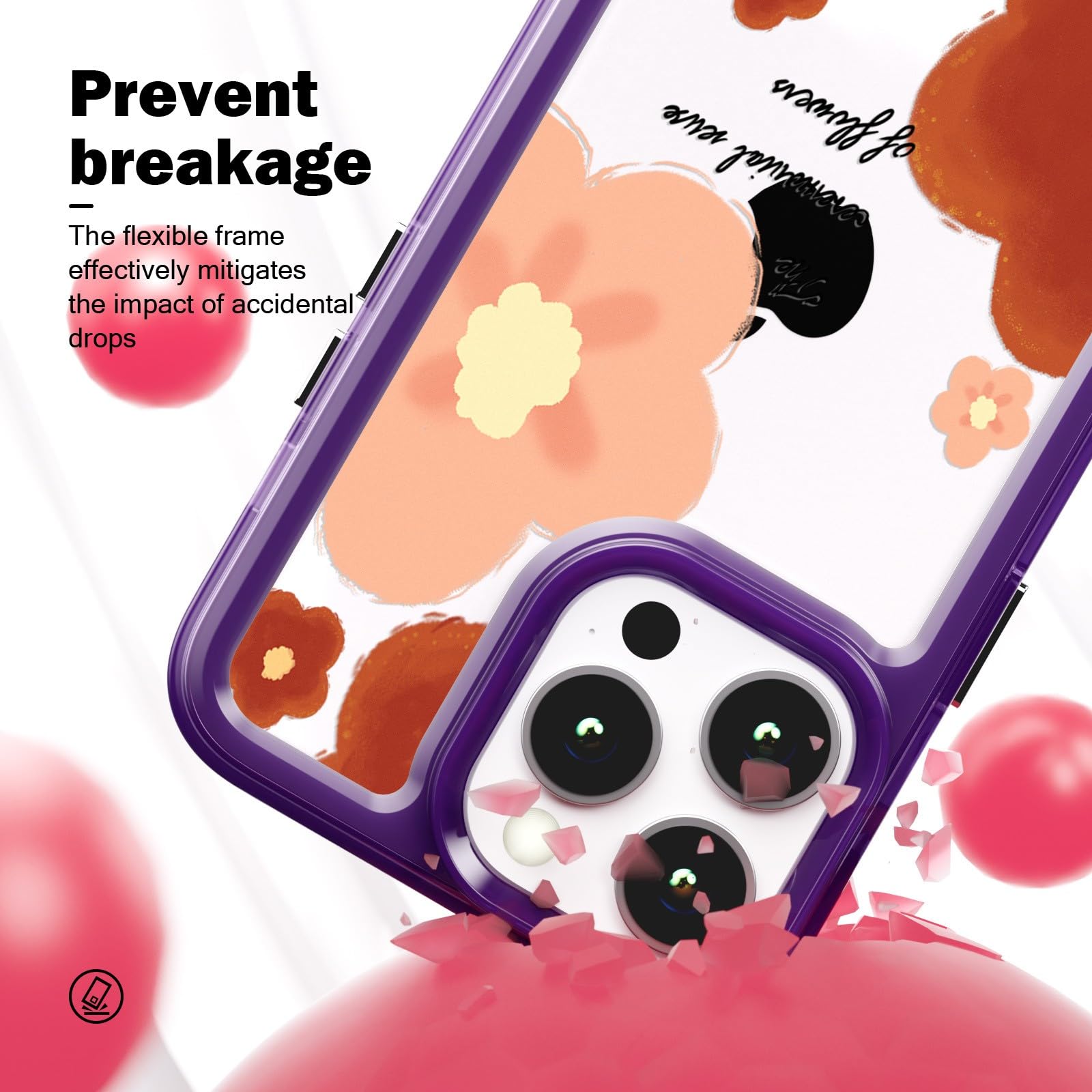 iPhone 12 Pro Max telefonikaaned, läbipaistev lilla, lilleline kogus