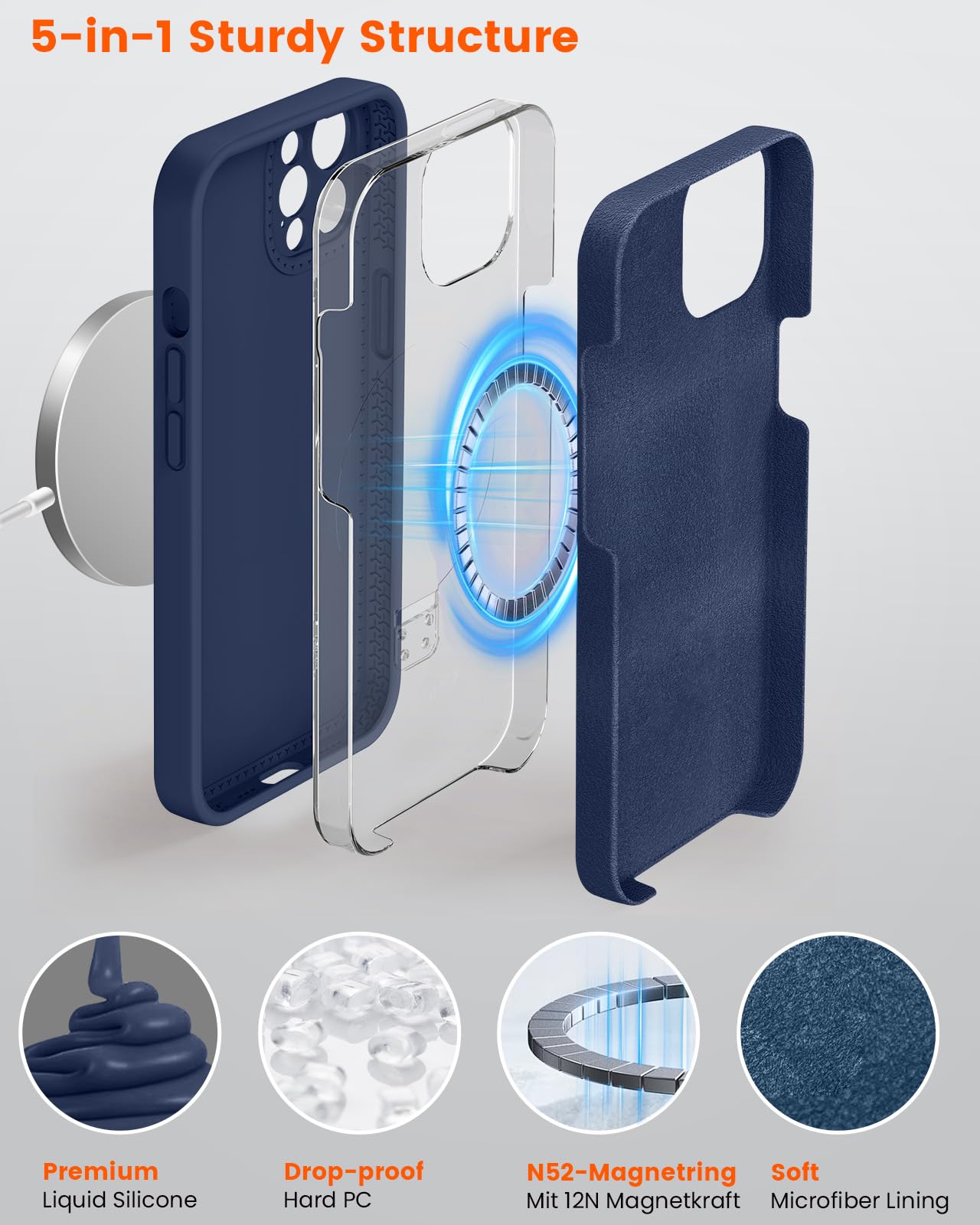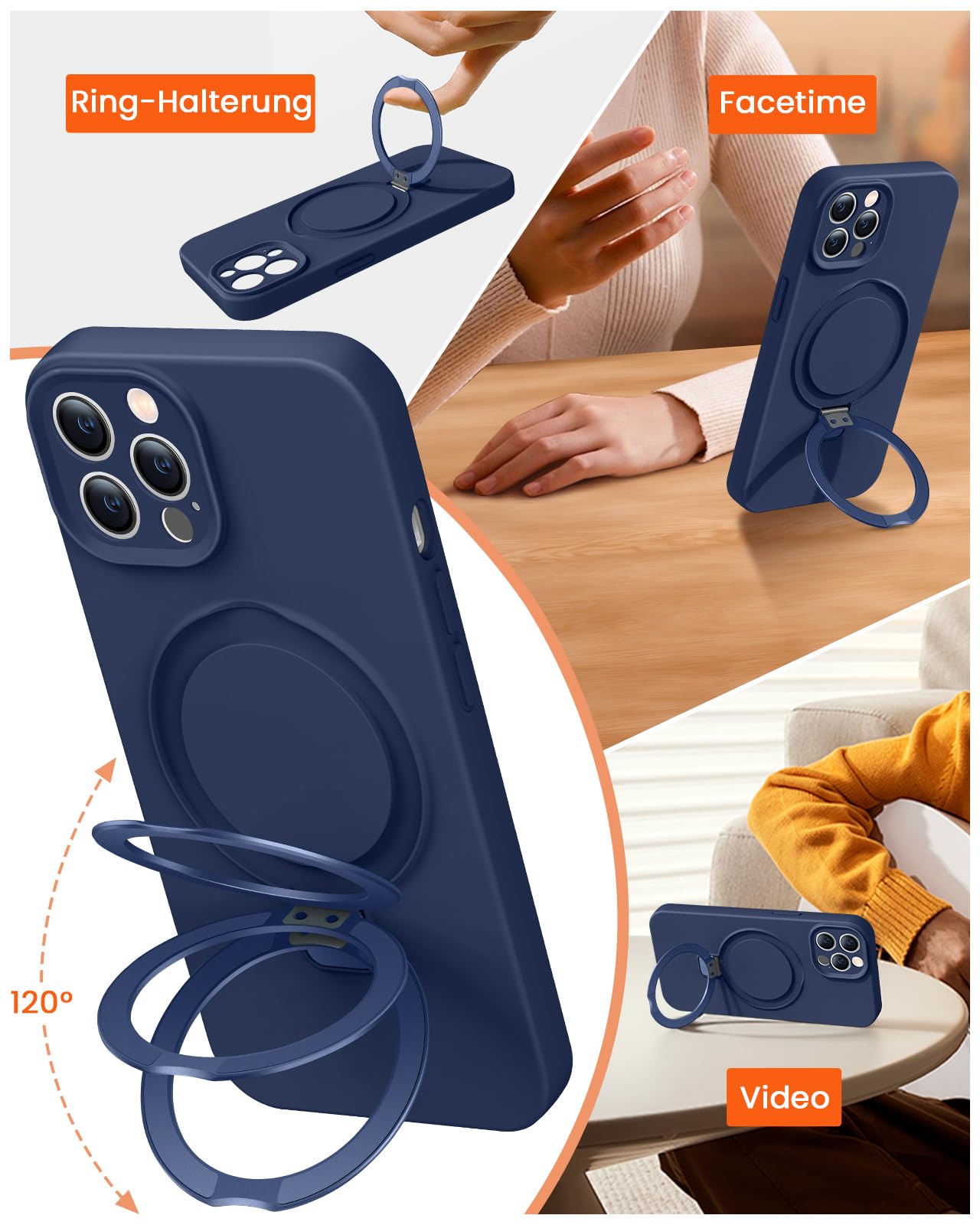 iPhone 12 Pro telefonikaaned, vedel silikoon, magnetilise rõngashoidjaga, tumesinine