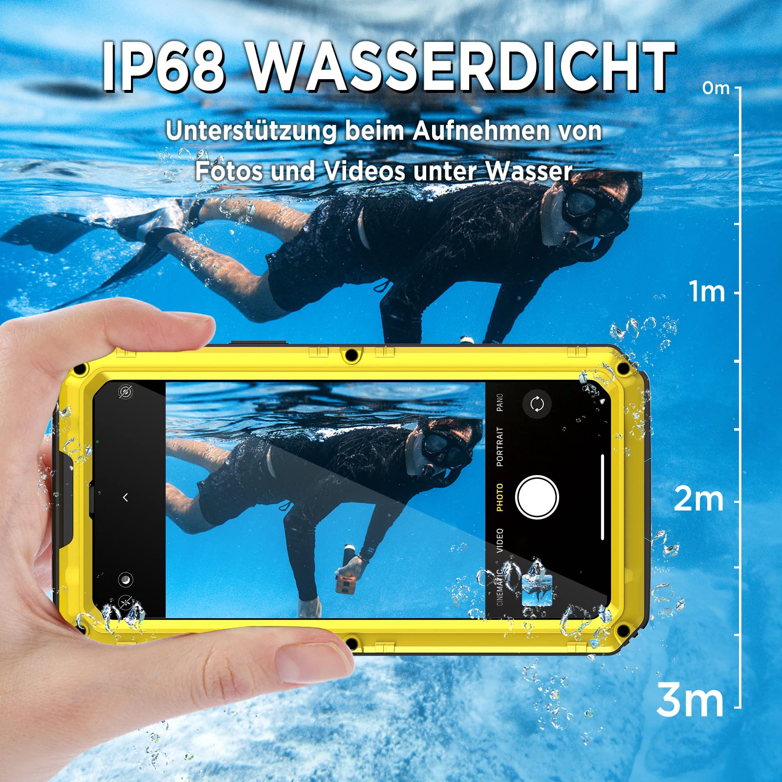 iPhone 13 telefonikaaned, veekindel, põrutuskindel, ekraanikaitsega, kollane