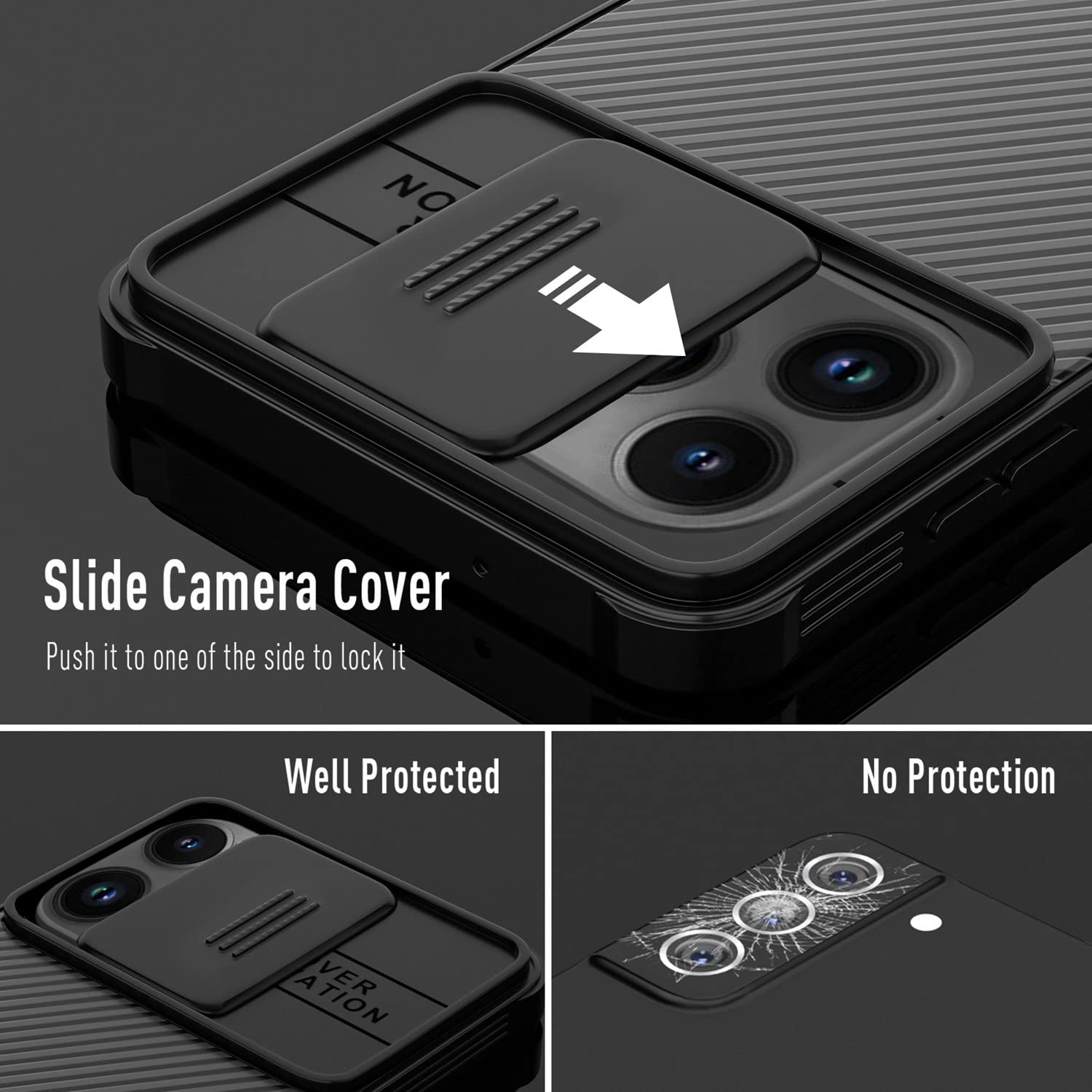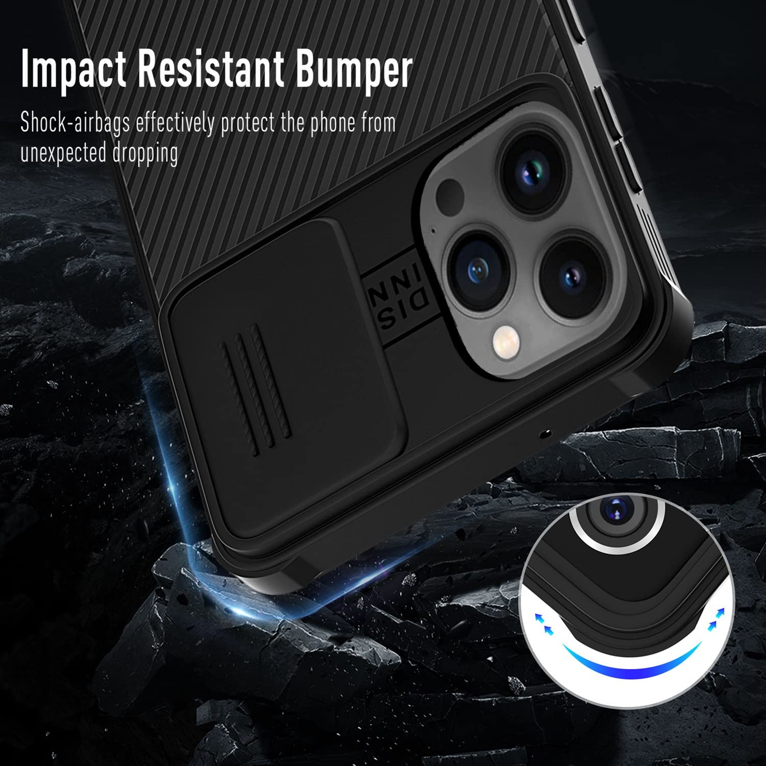iPhone 14 Pro Max telefonikaaned, liugkaamera kattega, must