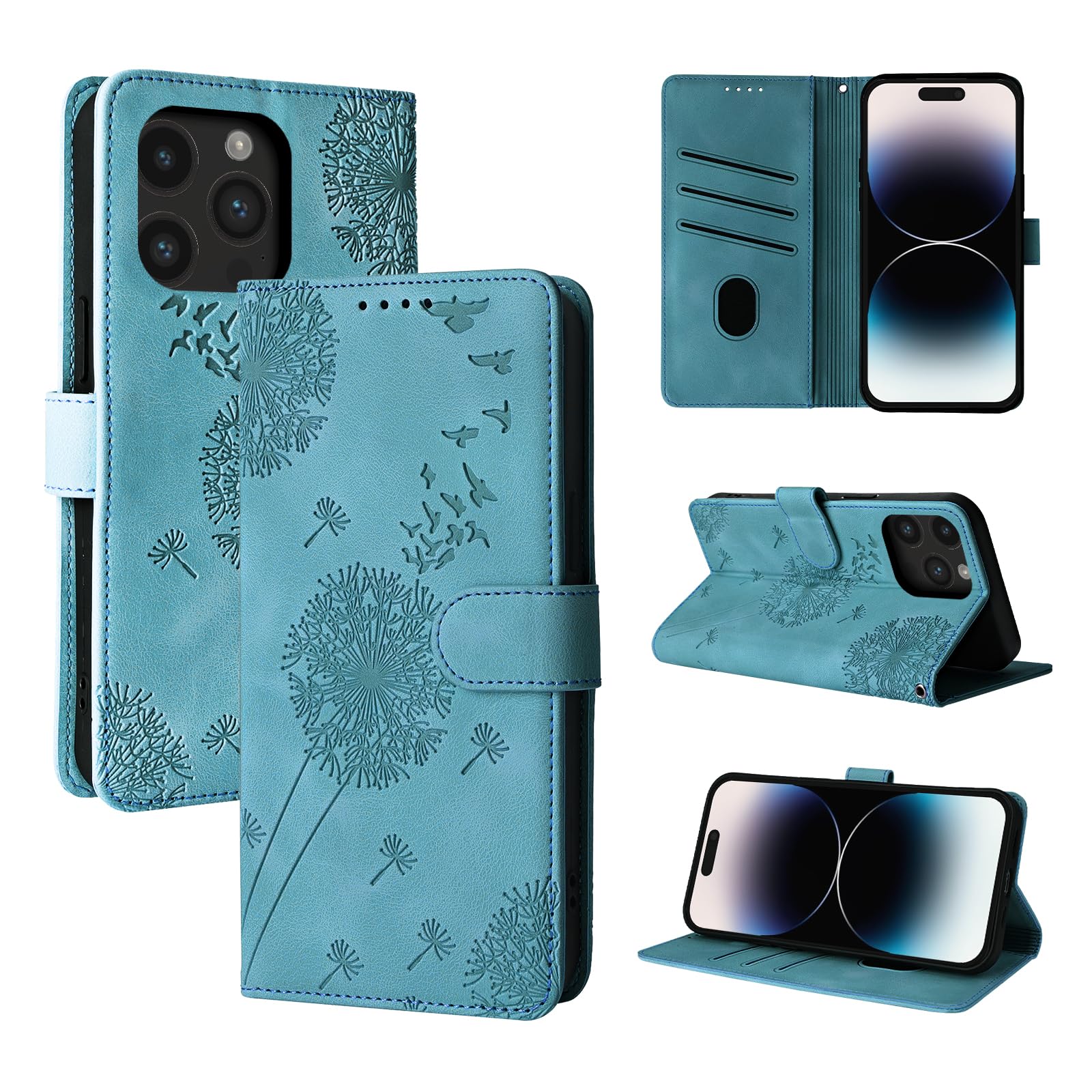 iPhone 14 Pro telefonikaaned, magnetiline klapiga, võilillemustriga, sinine