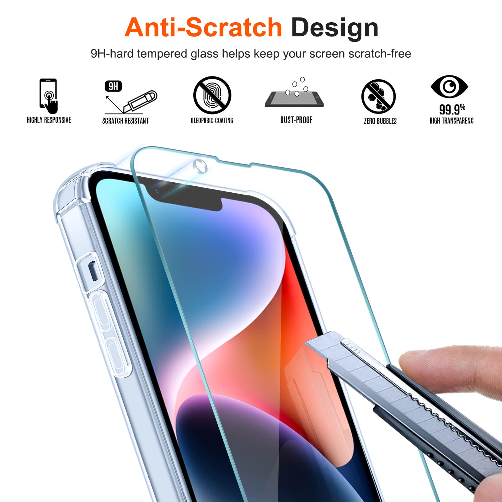 iPhone 14 telefonikaaned, läbipaistev (3tk ekraanikaitse, 15cm)