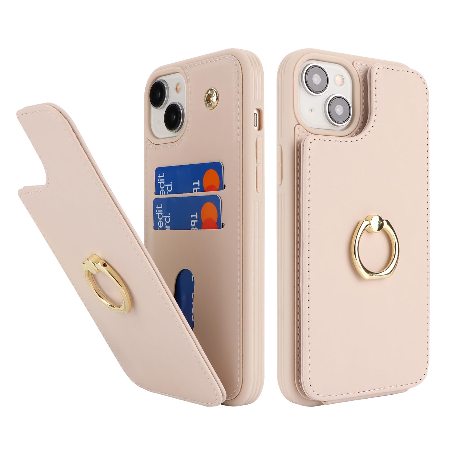 iPhone 15 Plus telefonikaaned, kaardihoidja ja sõrmusehoidjaga, beež