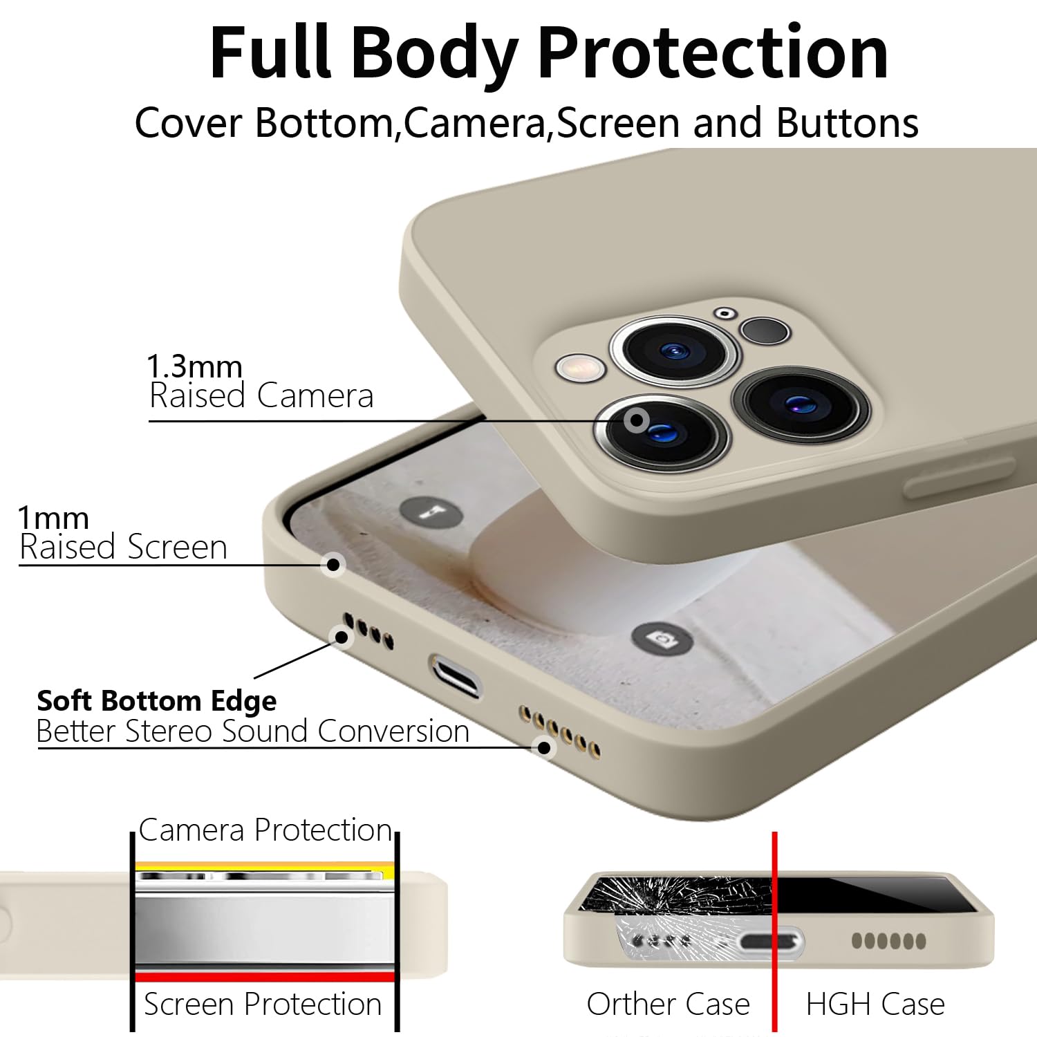 iPhone 15 Pro silikoonist telefonikaaned, üliõhuke, löögikindel, kaelapaelaga, beež (15cm)