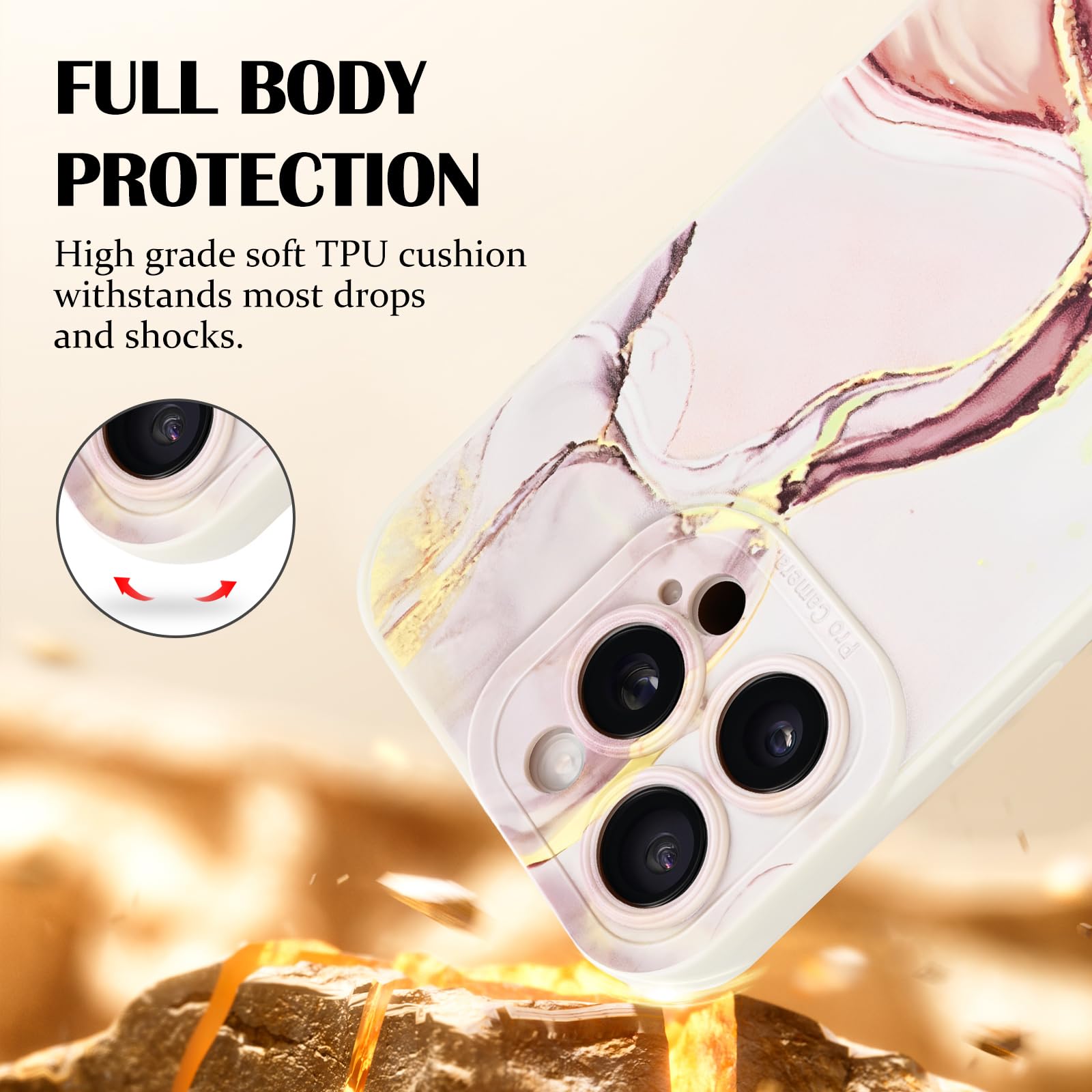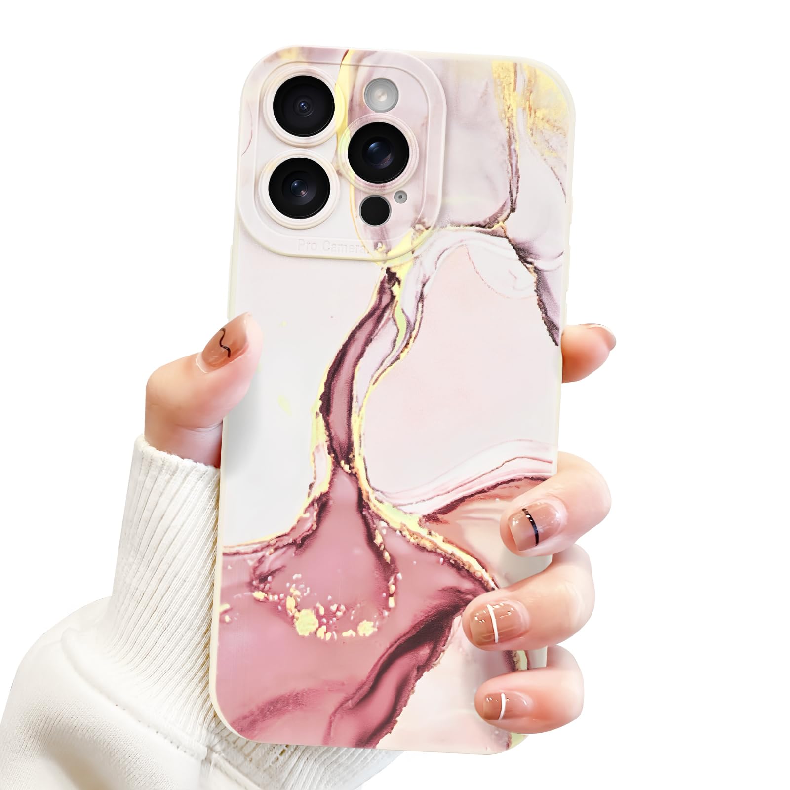 iPhone 16 Pro Max telefonikaaned, löögikindel, roosa, marmorimustriline kogus