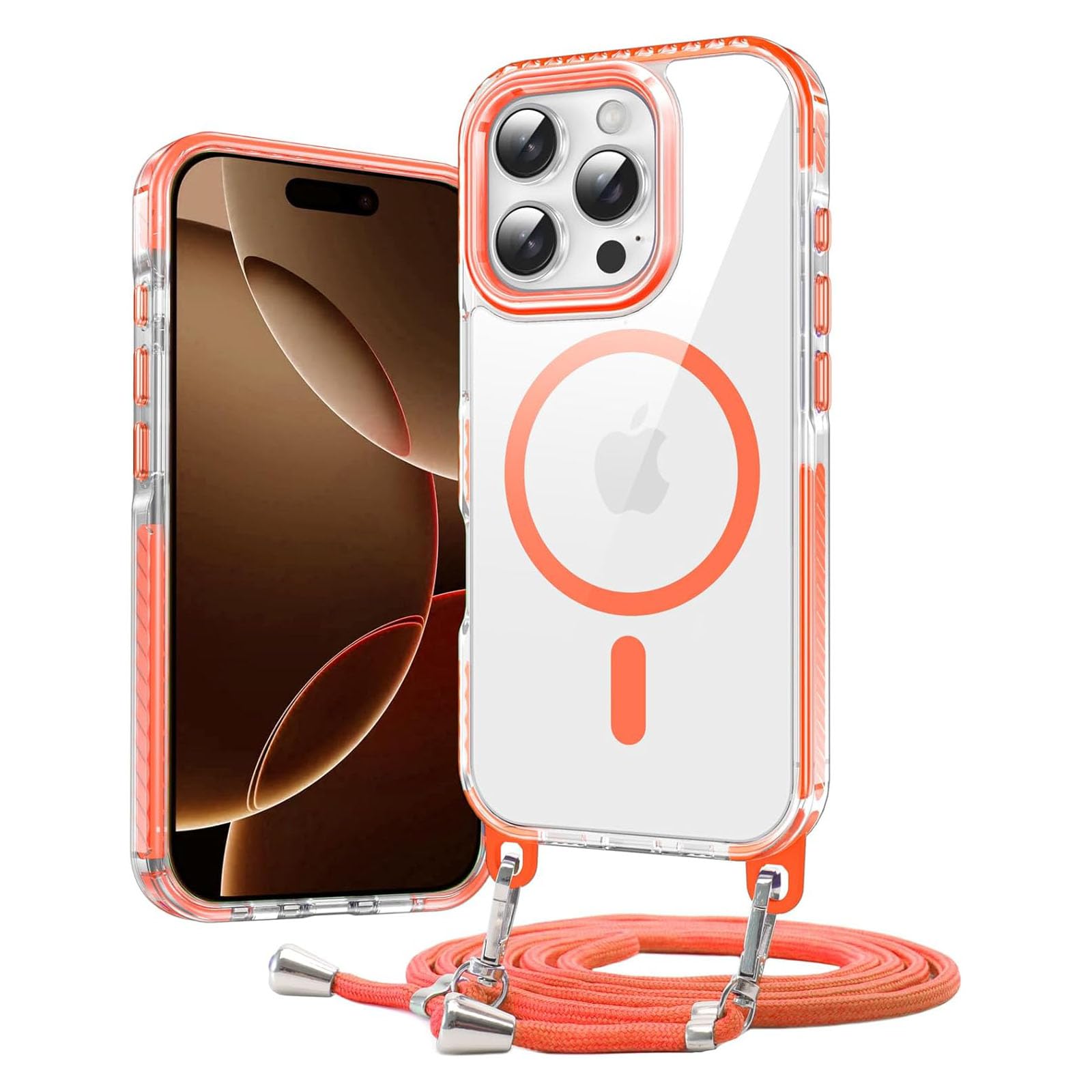 iPhone 16 Pro Max telefonikaaned, magnetiga, rihmaga, oranžid
