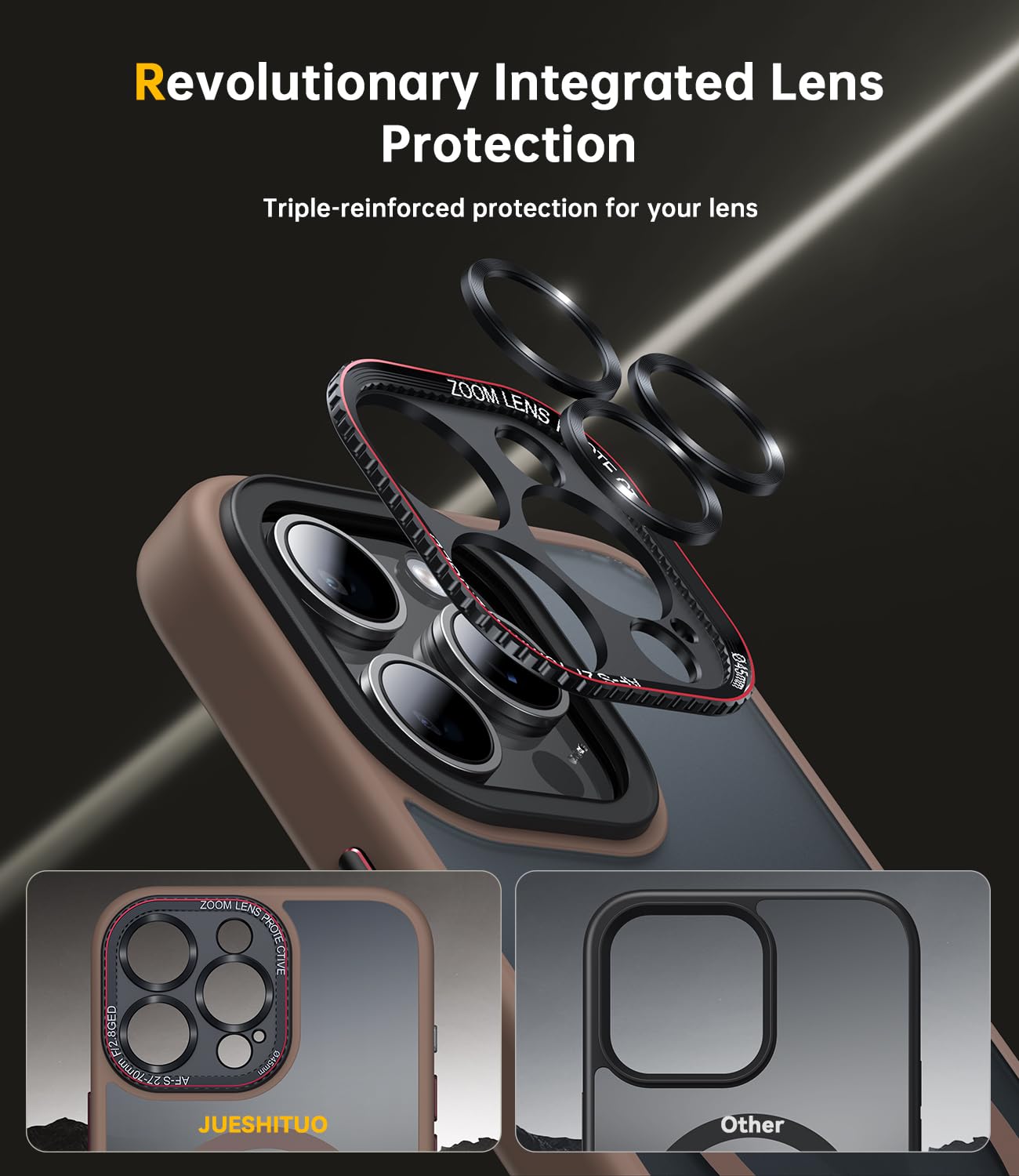 iPhone 16 Pro Max telefonikaaned, tugevdatud kaitsega, kaamerakaitsega, pruun kogus