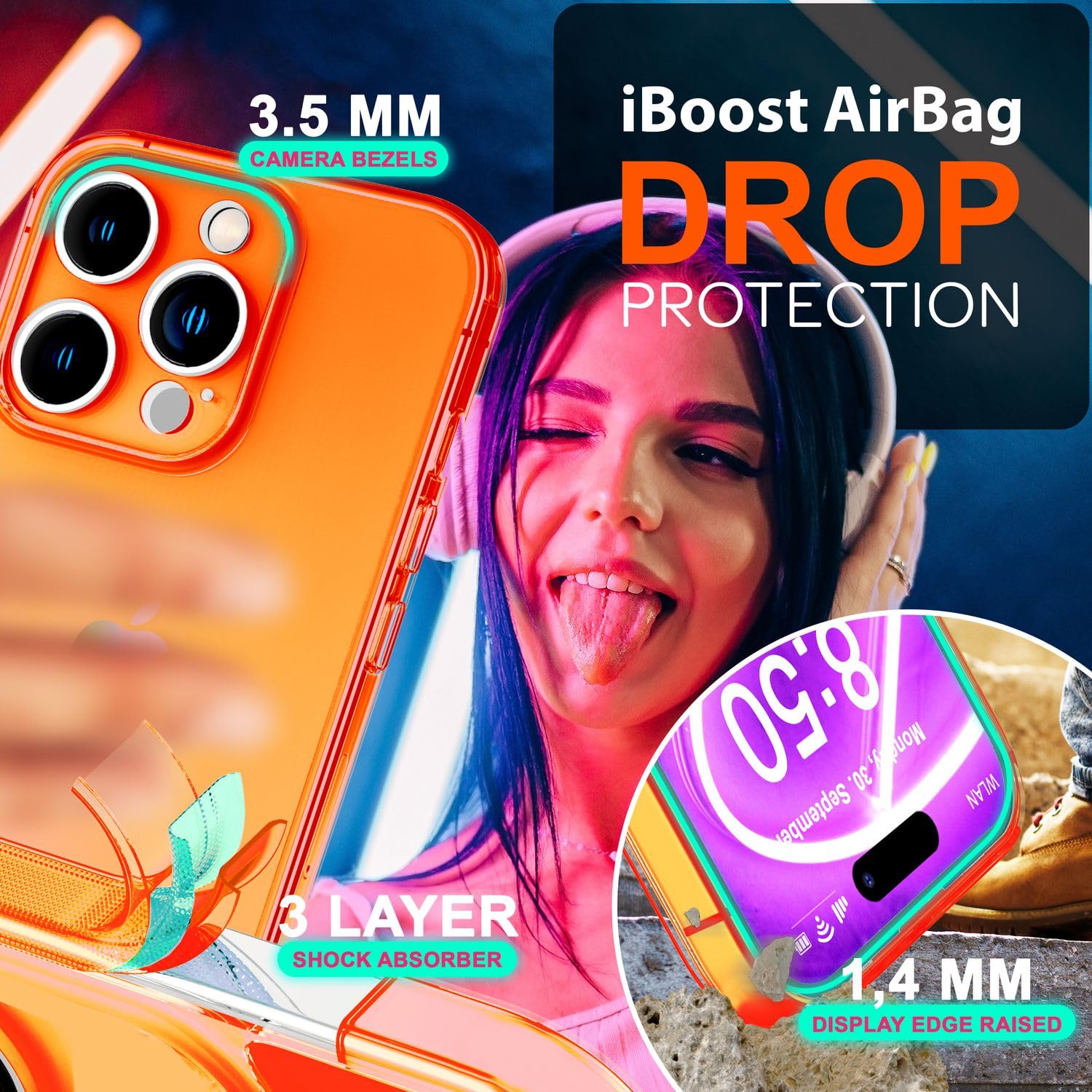 iPhone 16 Pro TPU telefonikaaned, põrutuskindel, poolläbipaistev, oranž