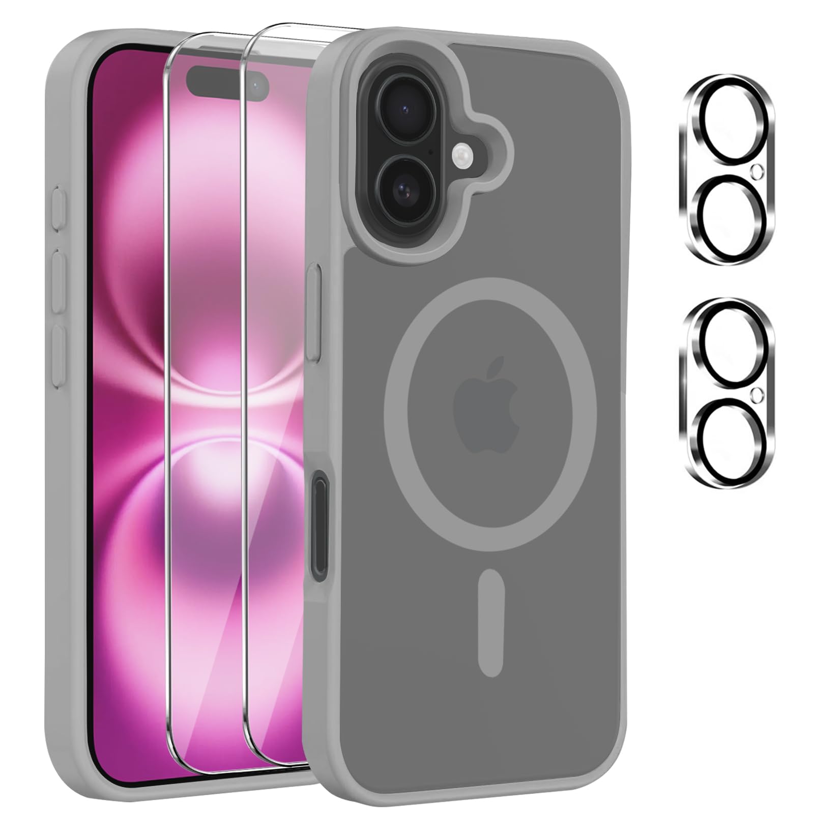 iPhone 16 TPU telefonikaaned, kaitsev, magnetkinnisega, ekraanikaitsega, titaanihall