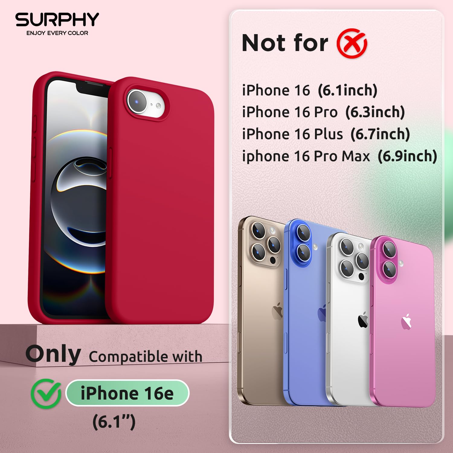 iPhone 16e telefonikaaned, magnetiline, silikoonist, põrutuskindel, punane kogus