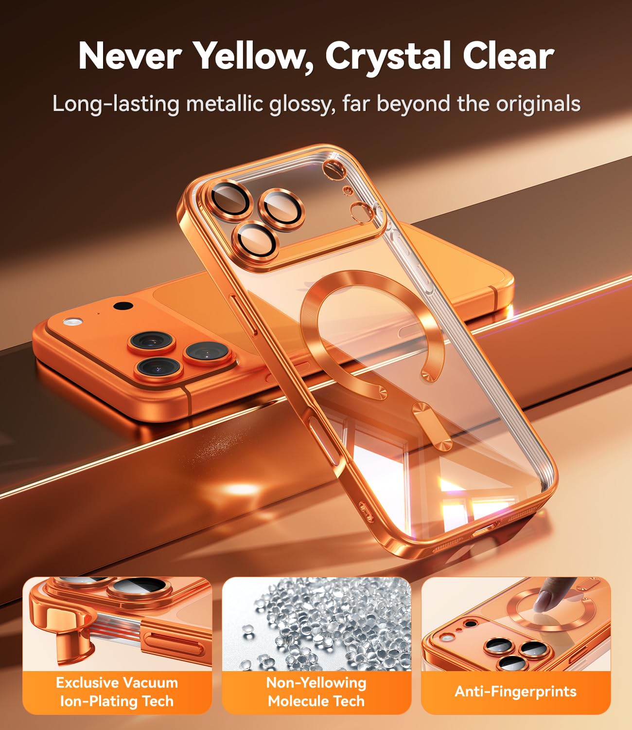 iPhone 17 Pro Max telefonikaaned, kaamera- ja ekraanikaitsega, oranž