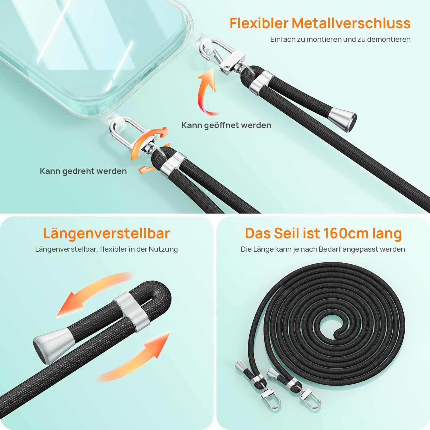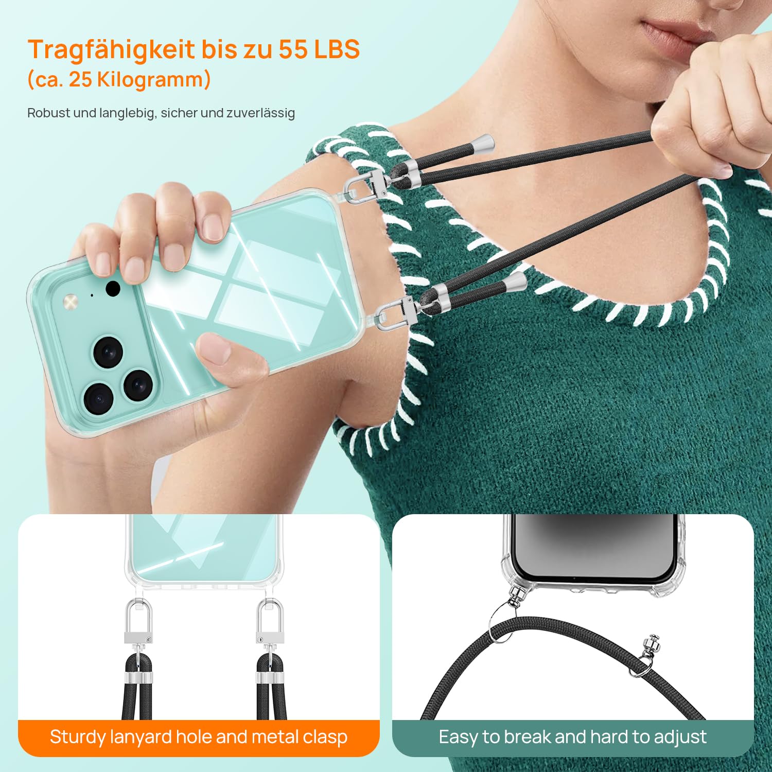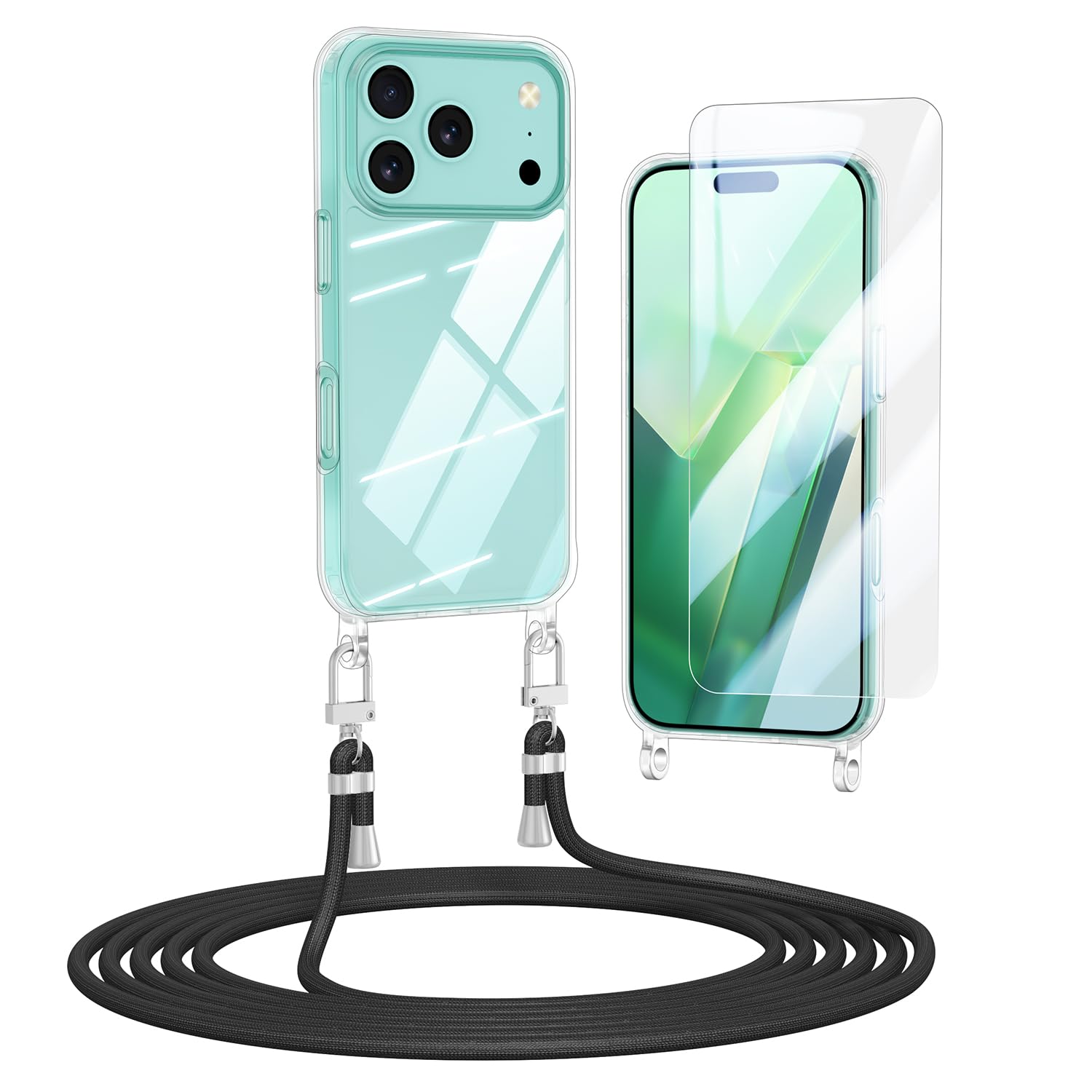 iPhone 17 Pro telefonikaaned, rihmaga, põrutuskindel, läbipaistev must