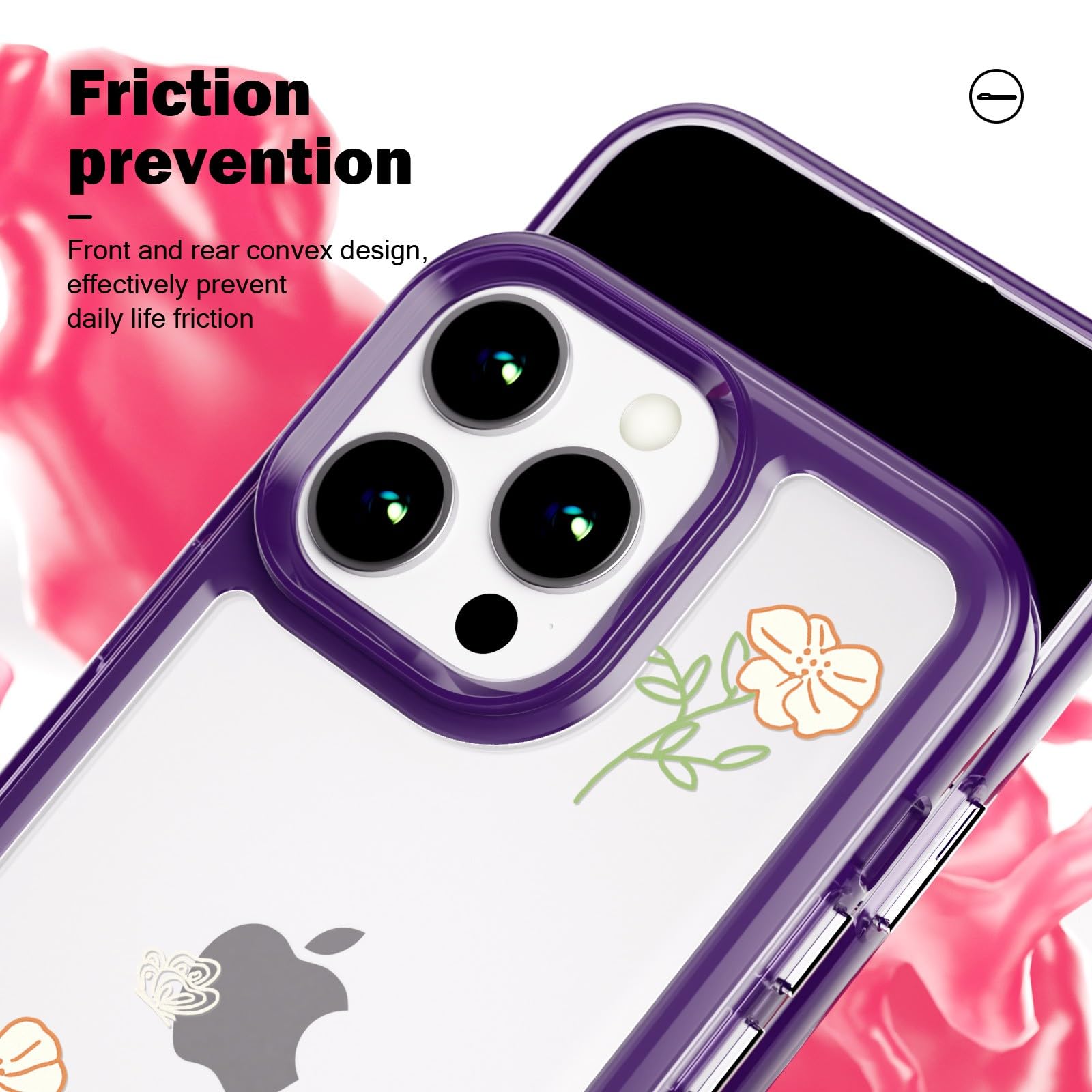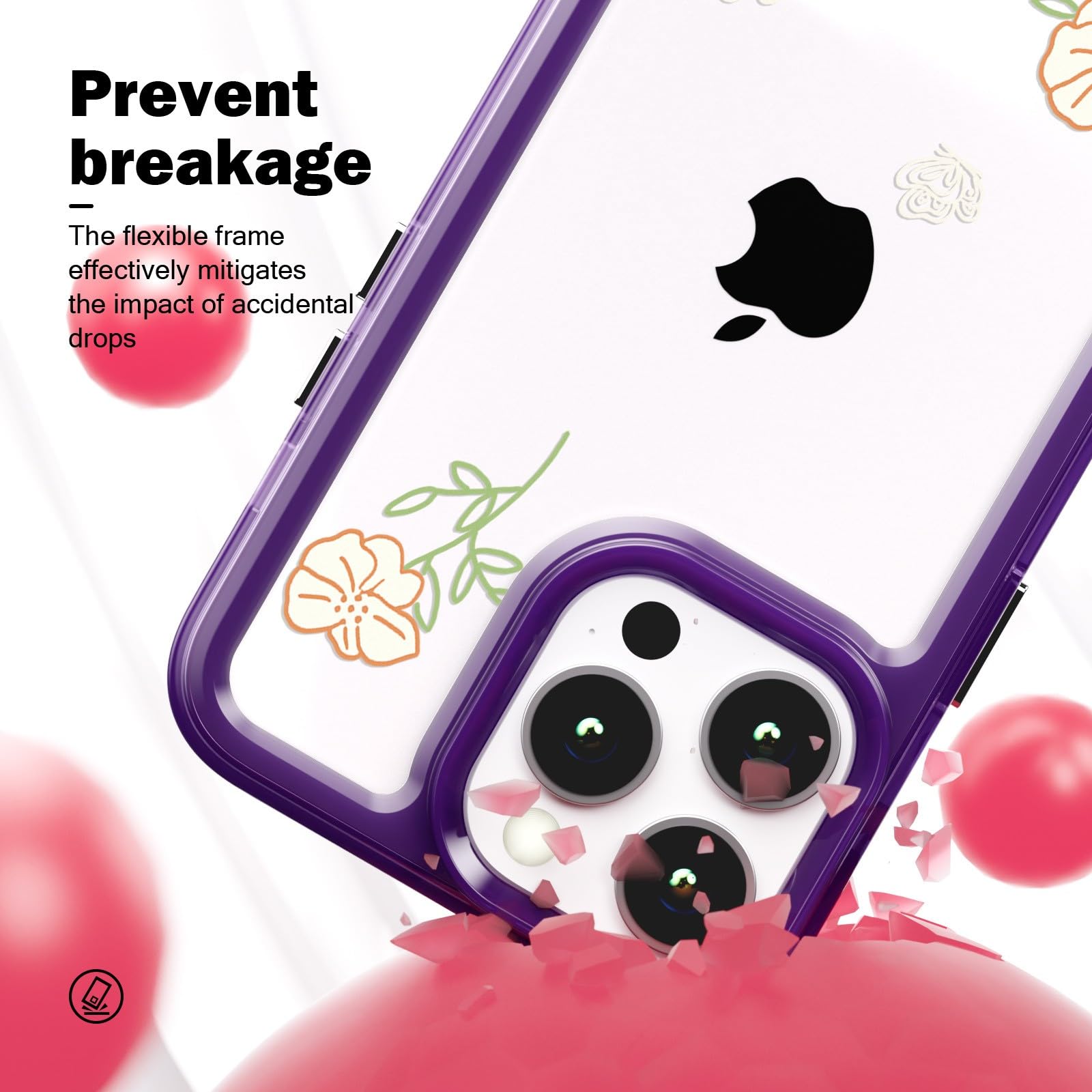 iPhone 12 Pro Max telefonikaaned, läbipaistev lilla, lilleline