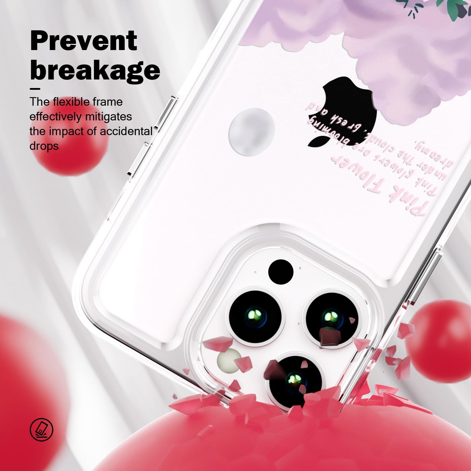 iPhone 12/12 Pro telefonikaaned, õhuke, TPU, põrutuskindel, kriimustusvastane, hall lillemustriga