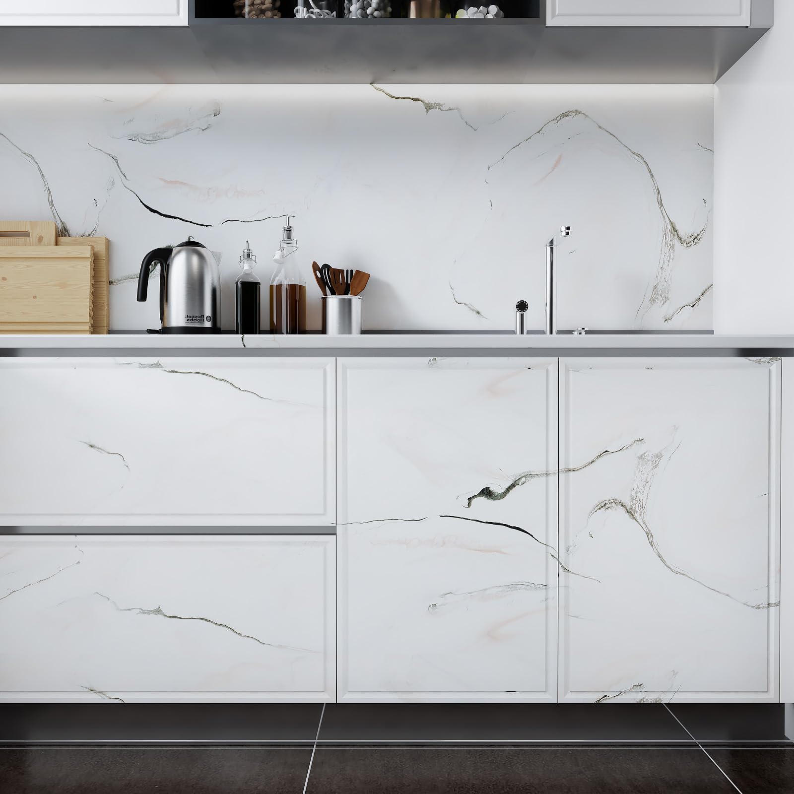 Isekleepuv pestav tapeet, marmormustriga, kreemjasvalge (40x1000cm)