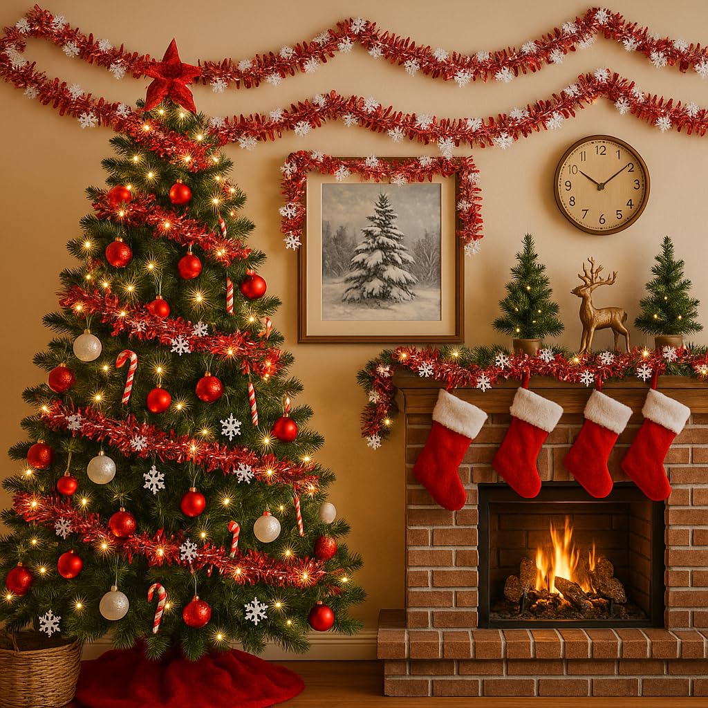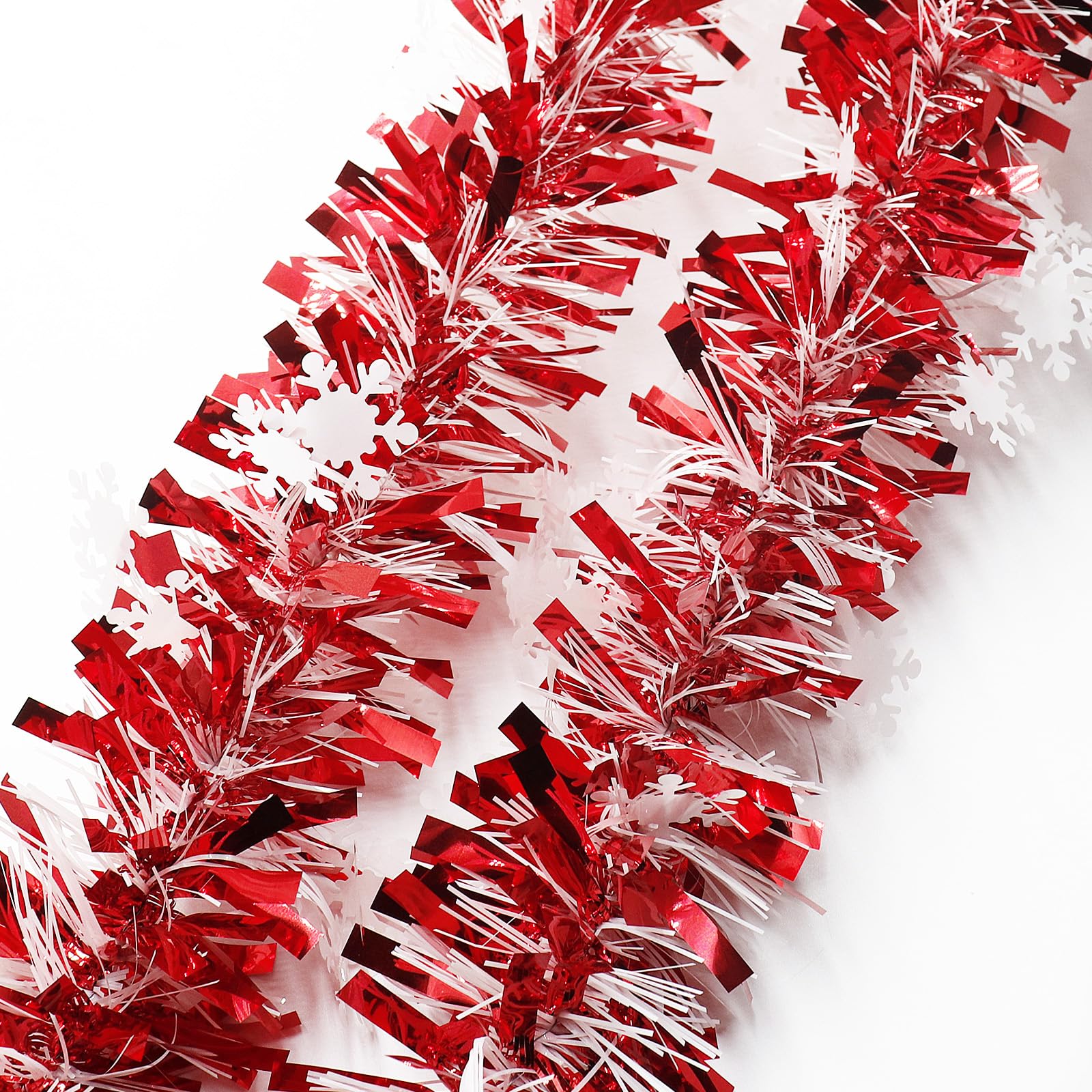 Jõulugirland lumehelvestega, punane ja valge (10m)