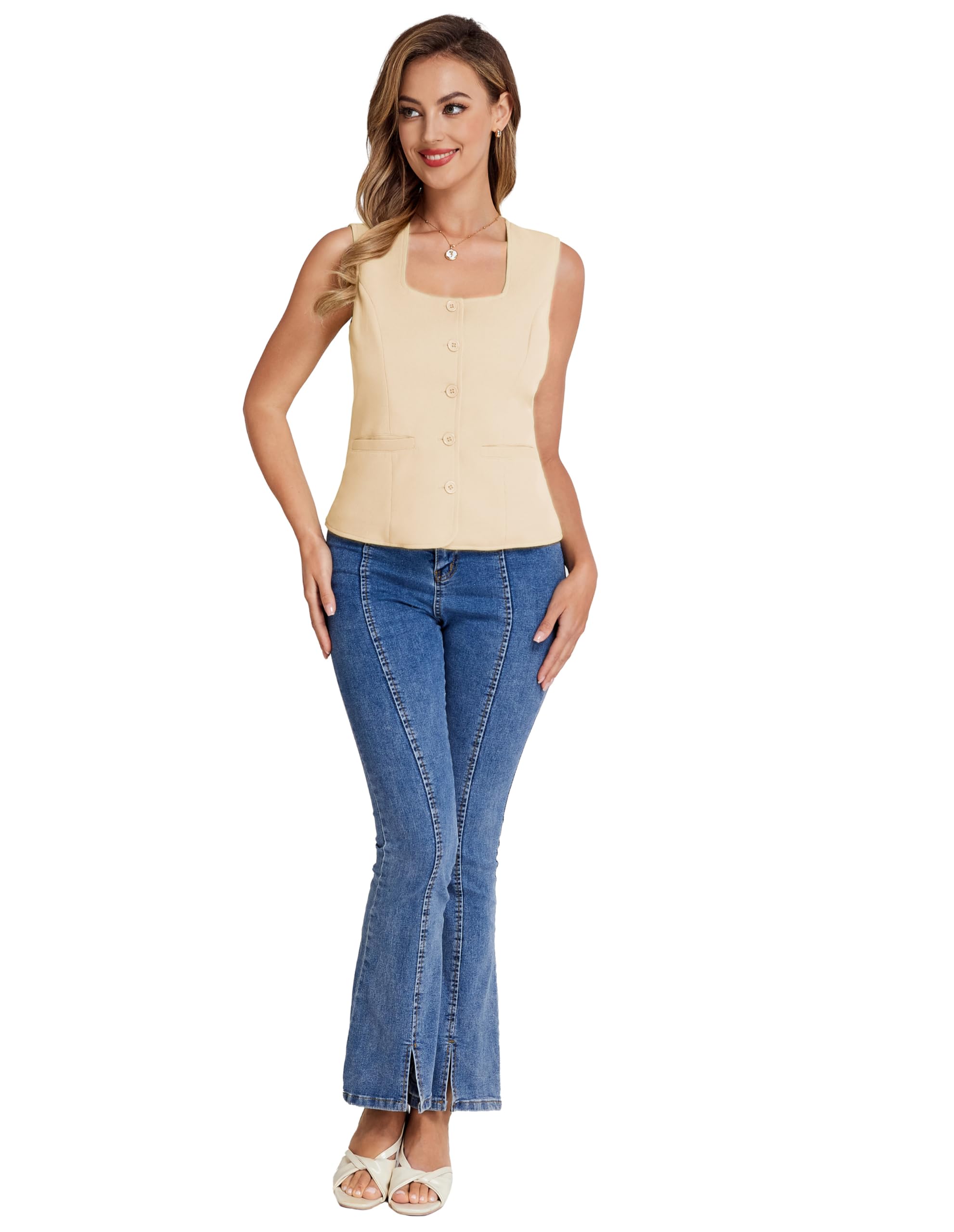 Kandilise kaelusega varrukateta vest, aprikoos (s. XL)
