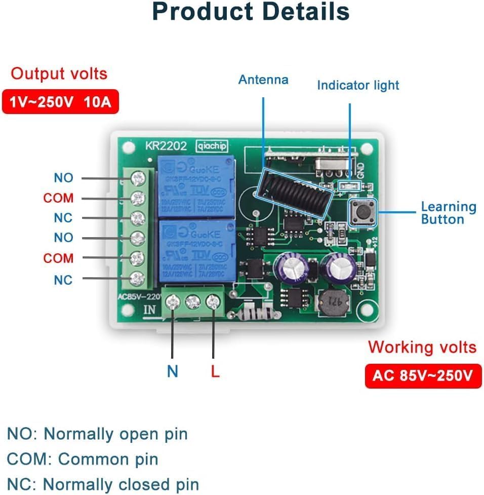 Kaugjuhtimislüliti, 2 kanalit (433MHz, 220V)