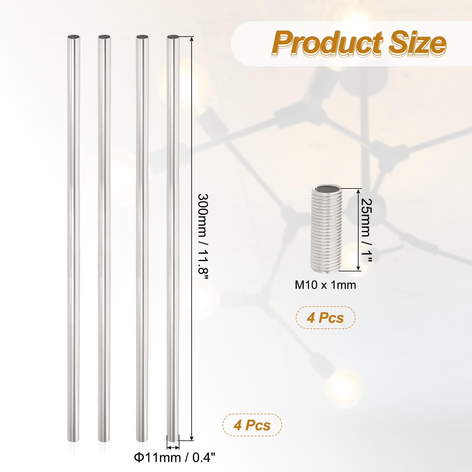 Keermestatud vardad valgustitele (4tk, 30cm)