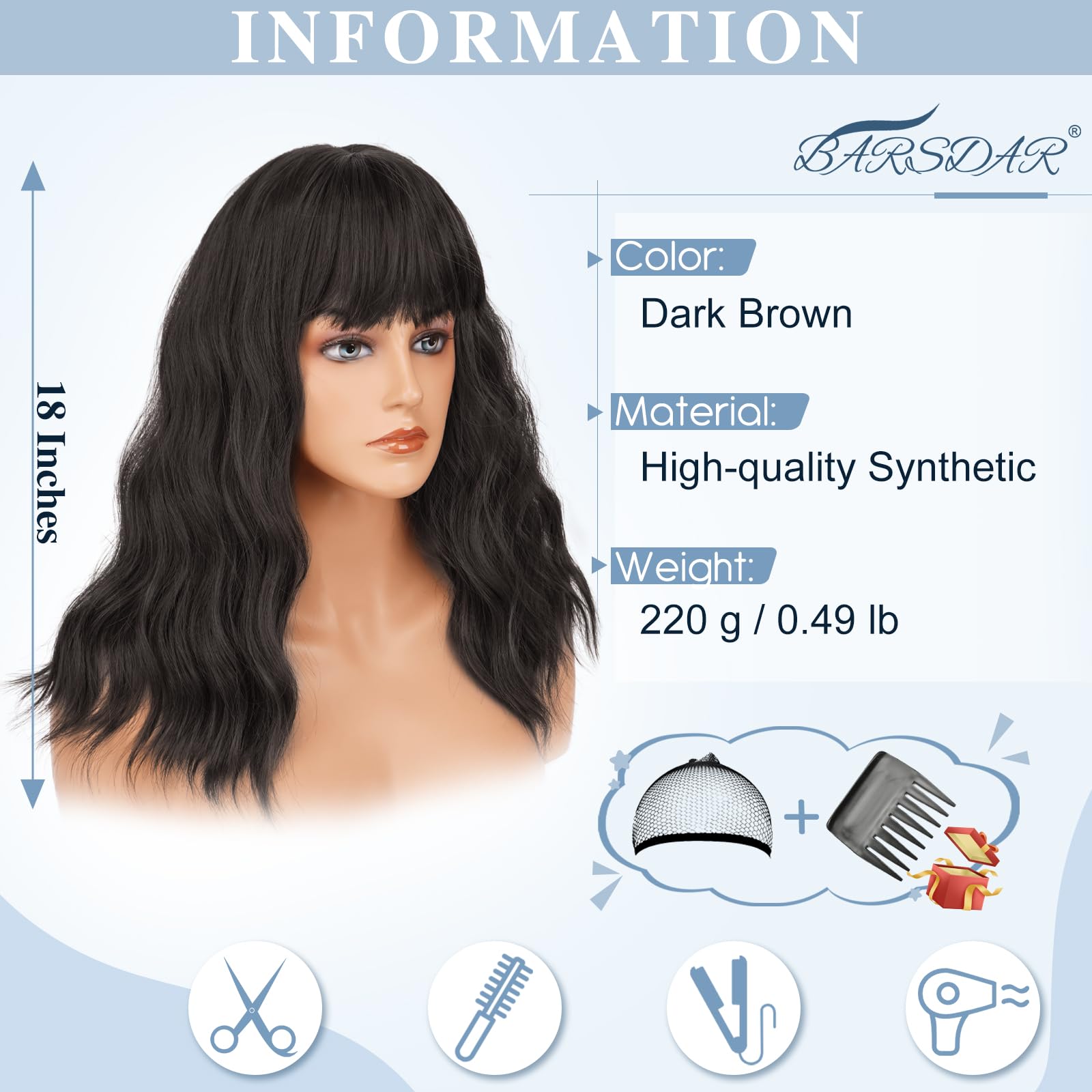 Keskmise pikkusega tume pruun sünteetiline parukas, laineline