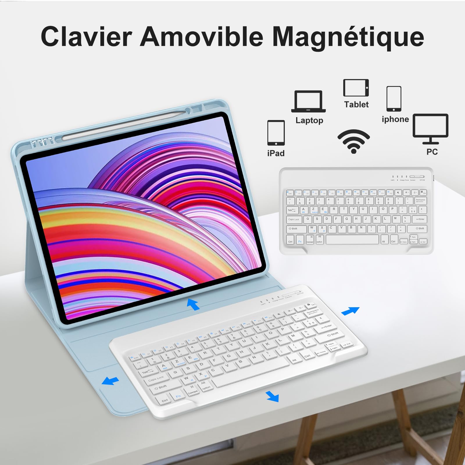Klaviatuuriga ümbris Redmi Pad Pro, AZERTY, helesinine (31cm)