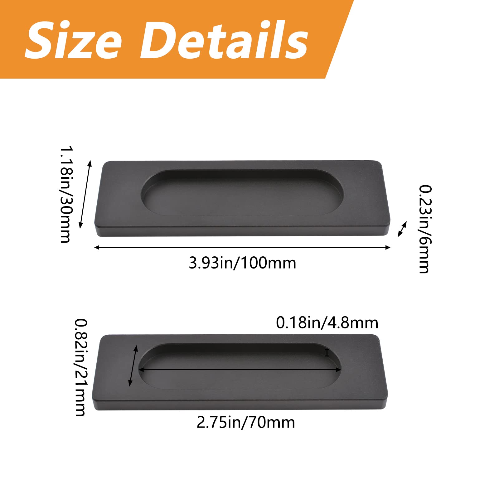 Kleebitavad ristkülikukujulised käepidemed, mattmust (2tk, 10cm)