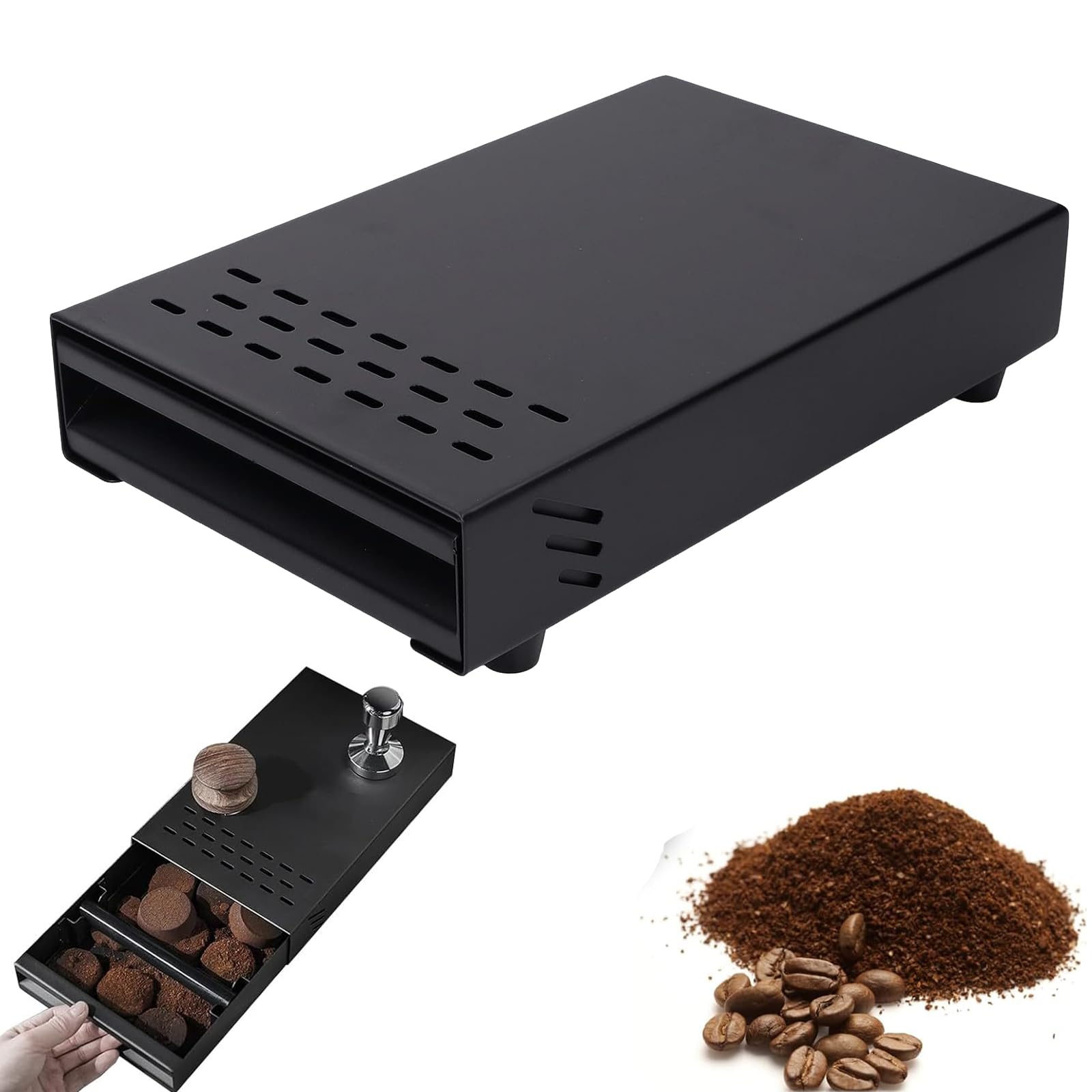 Kohvipaksu nõu-sahtel, roostevaba teras, hõbedane