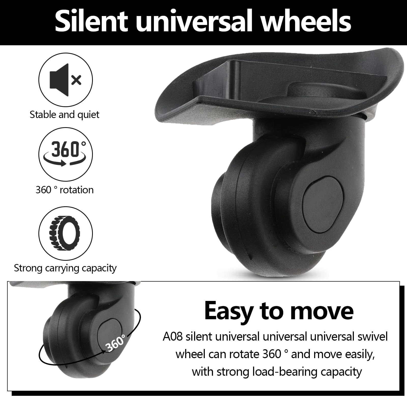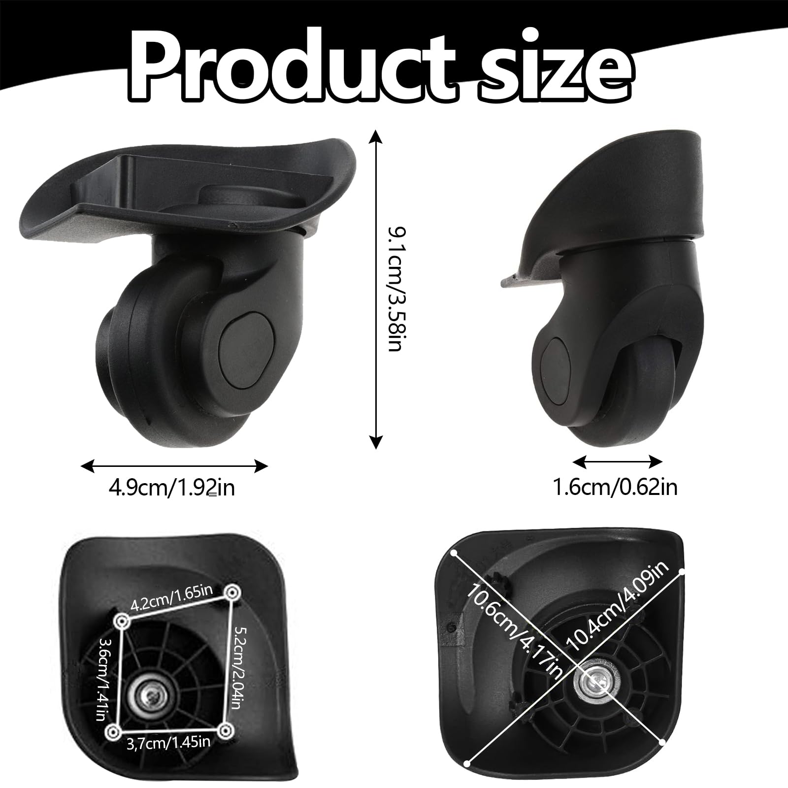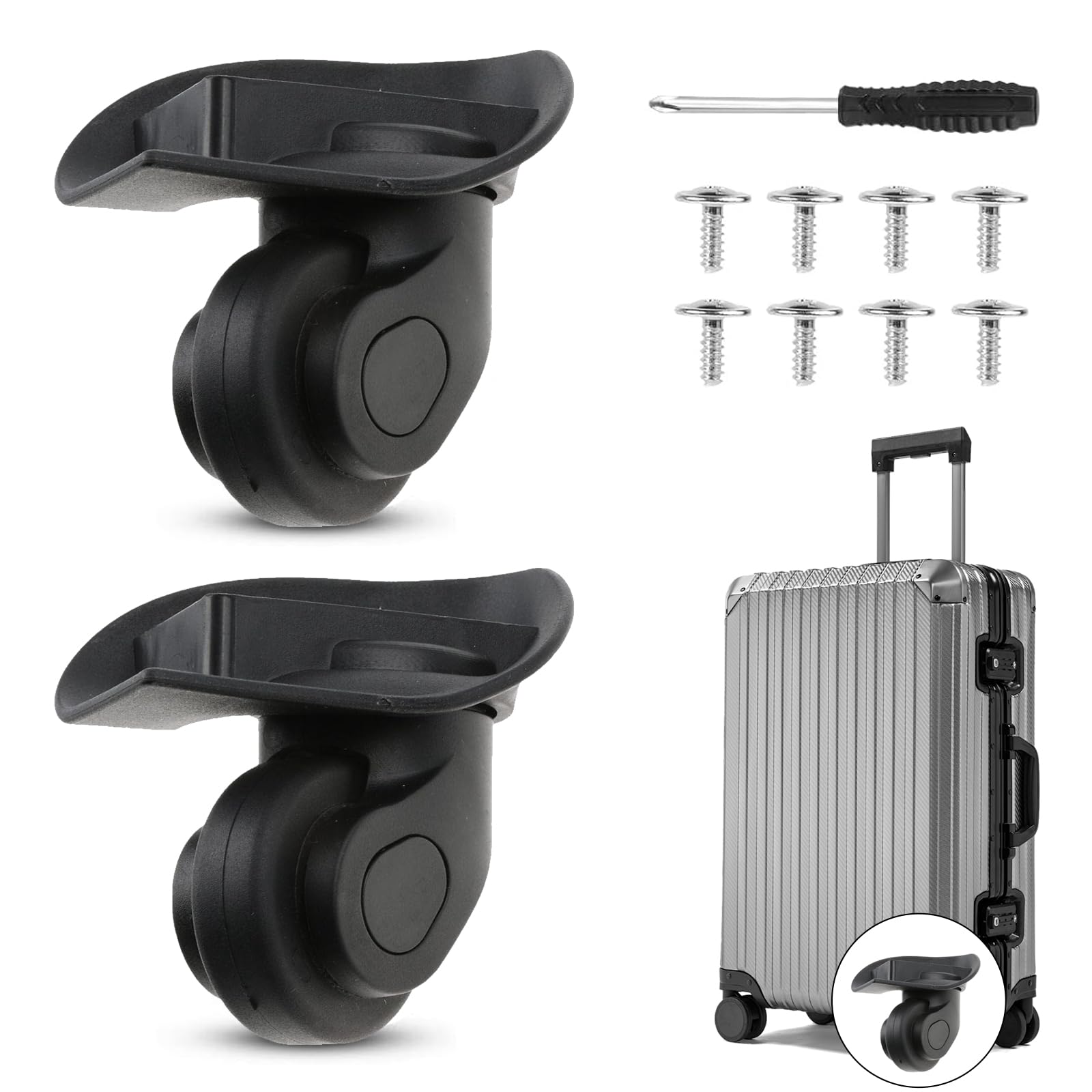 Kohvri asendusrataste komplekt, must (2tk)