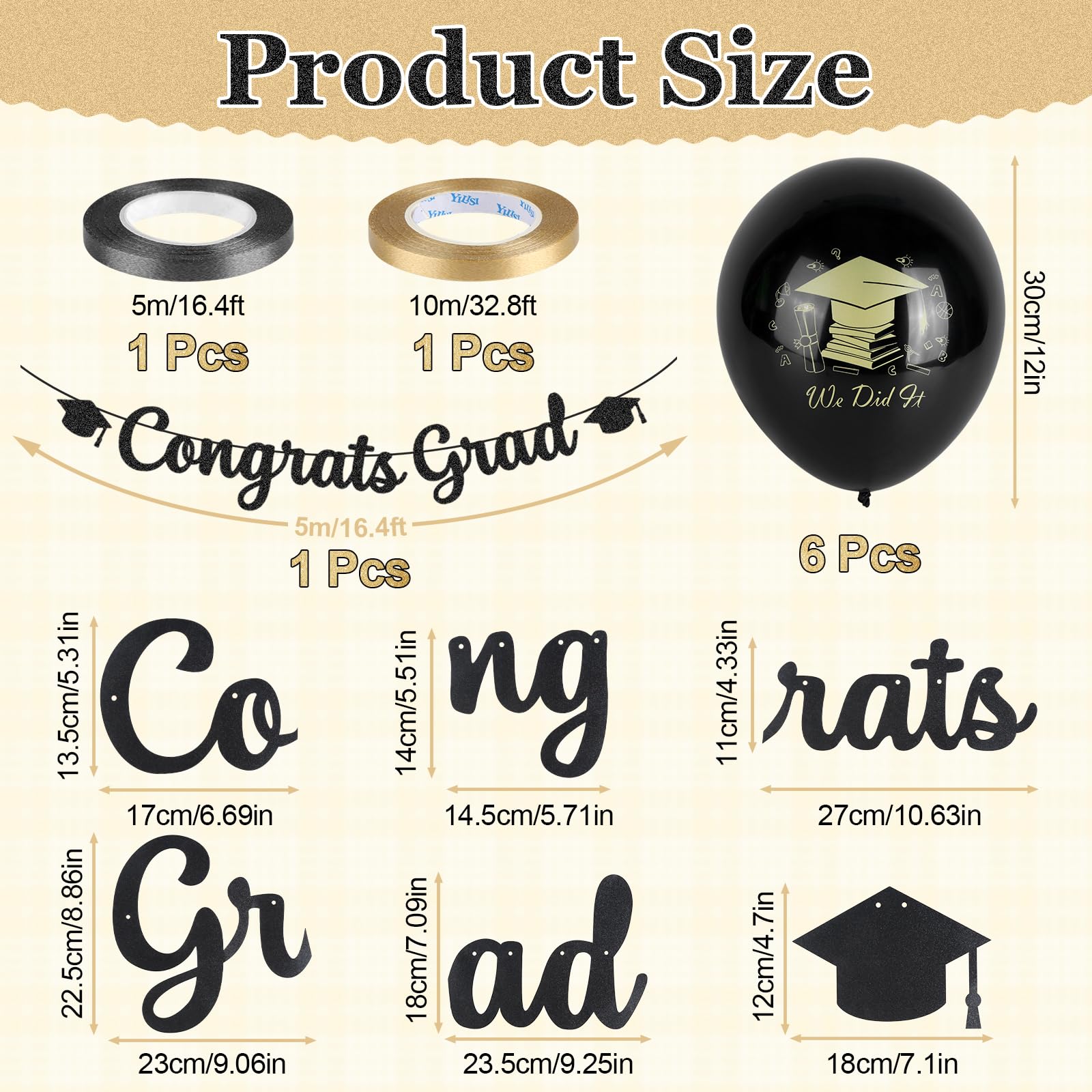 Koolilõpu kaunistuste komplekt “Congrats Grad” (6 õhupalli)