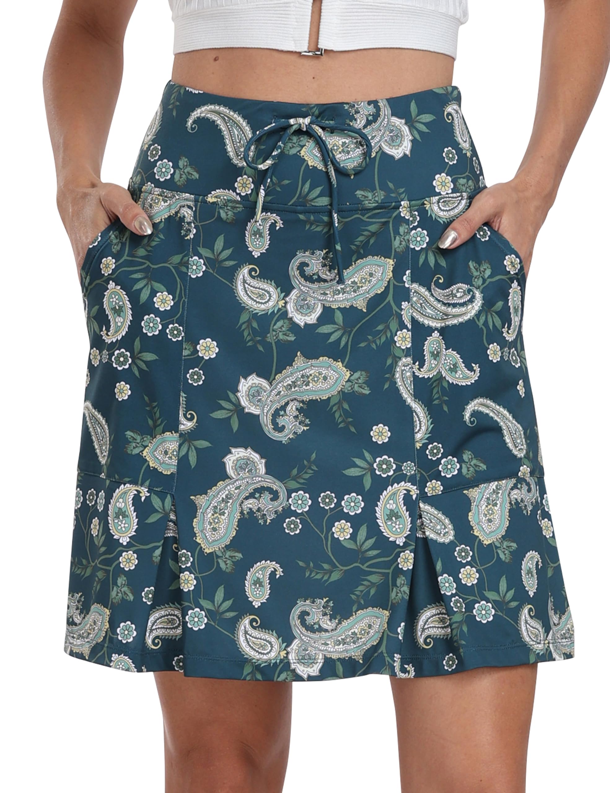 Kõrge vöökohaga naiste tenniseselik sisepükstega, tumeroheline (S) kogus